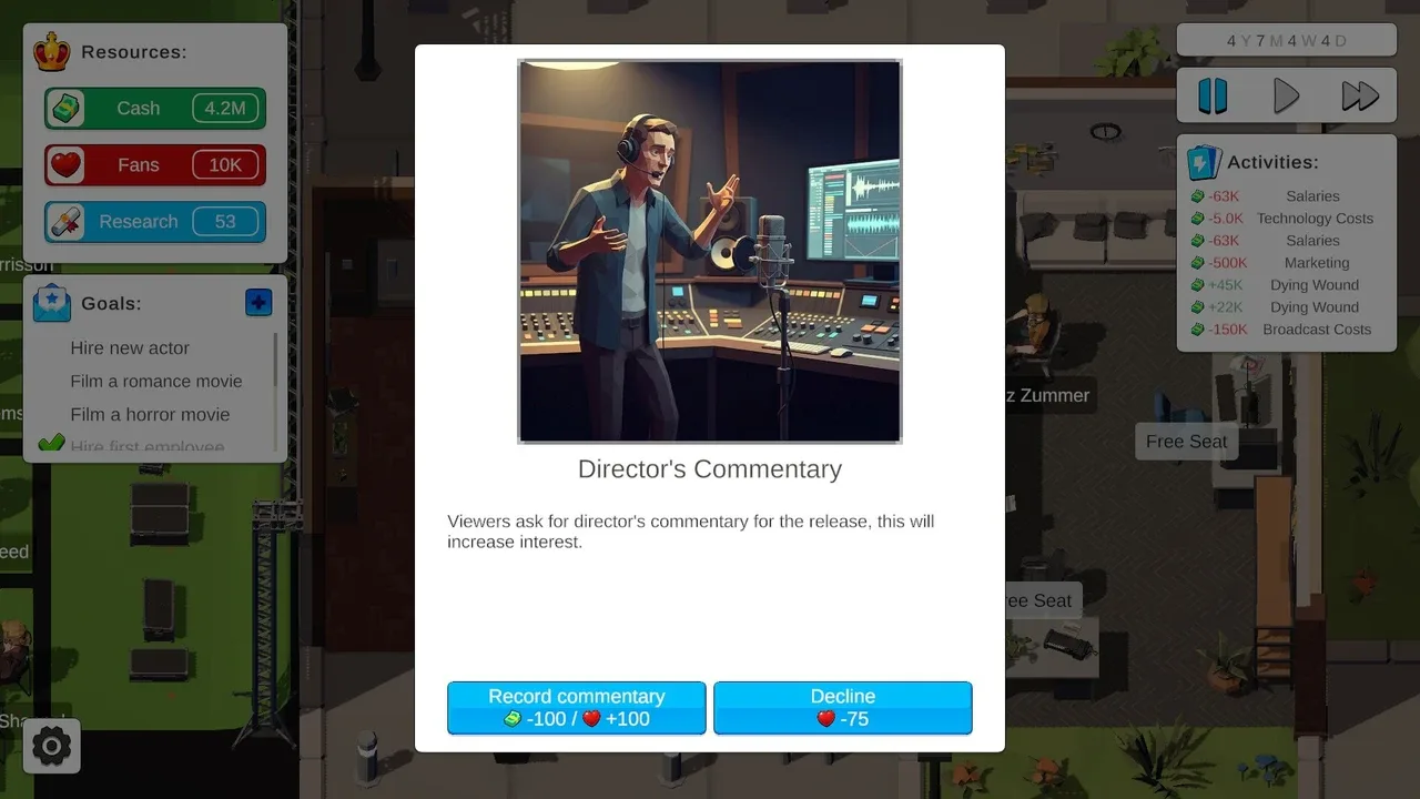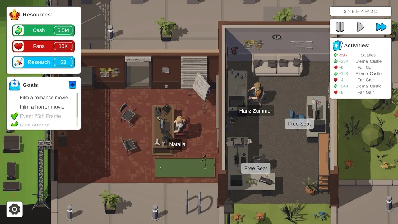¡Construye tu imperio cinematográfico! Crea superproducciones combinando 44 temas y 22 géneros, contrata actores estrella mediante audiciones, desarrolla tu estudio y tecnologías. Locos sucesos aleatorios, referencias a estrellas reales y toneladas de humor. ¡Demuestra que eres el mejor director!