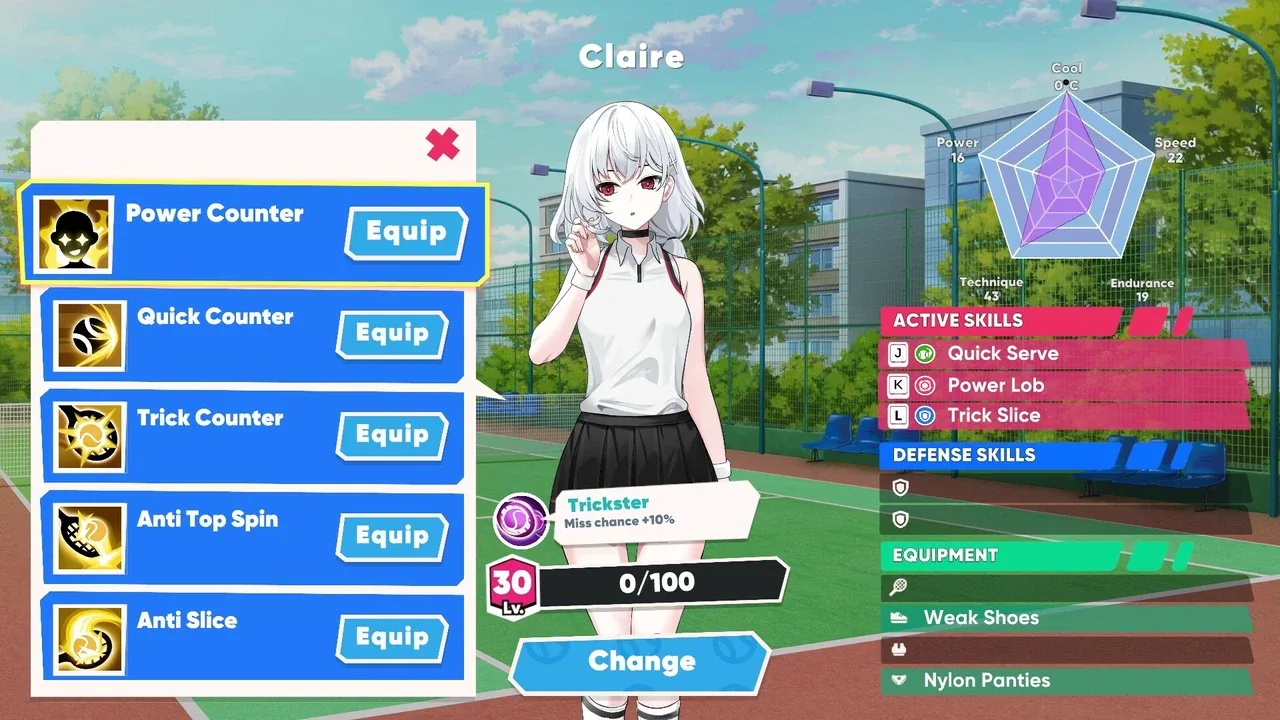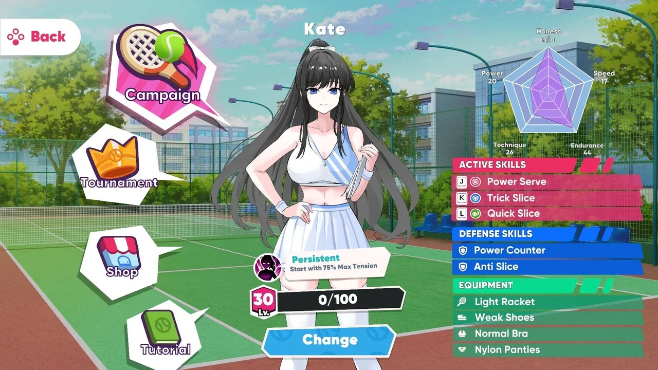 Conviértete en entrenador del club de tenis de una prestigiosa academia deportiva en la que todos los miembros son tías buenas, pero todas te odian. ¿Qué hacer ahora? ¡¡¡Conquistarlas a todas, por supuesto!!! Prepárate para acalorados partidos de tenis con una dinámica de juego y poderosas habilidades. Demuestra tus habilidades y gánate sus corazones.