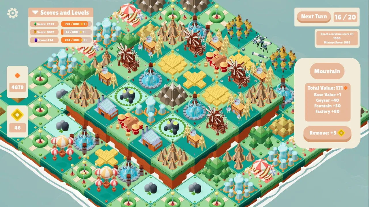 A minimalistic city builder where you can rack up tons of points for your island by strategically placing buildings on blocks around each other.