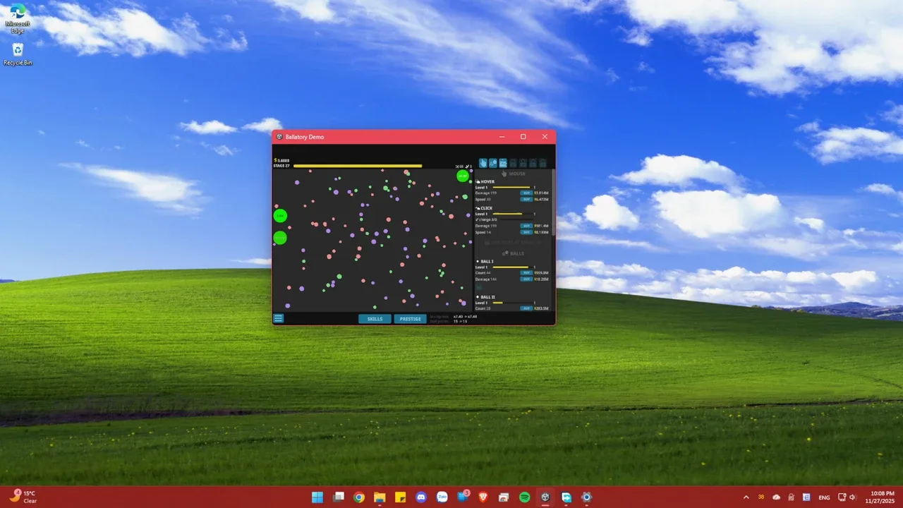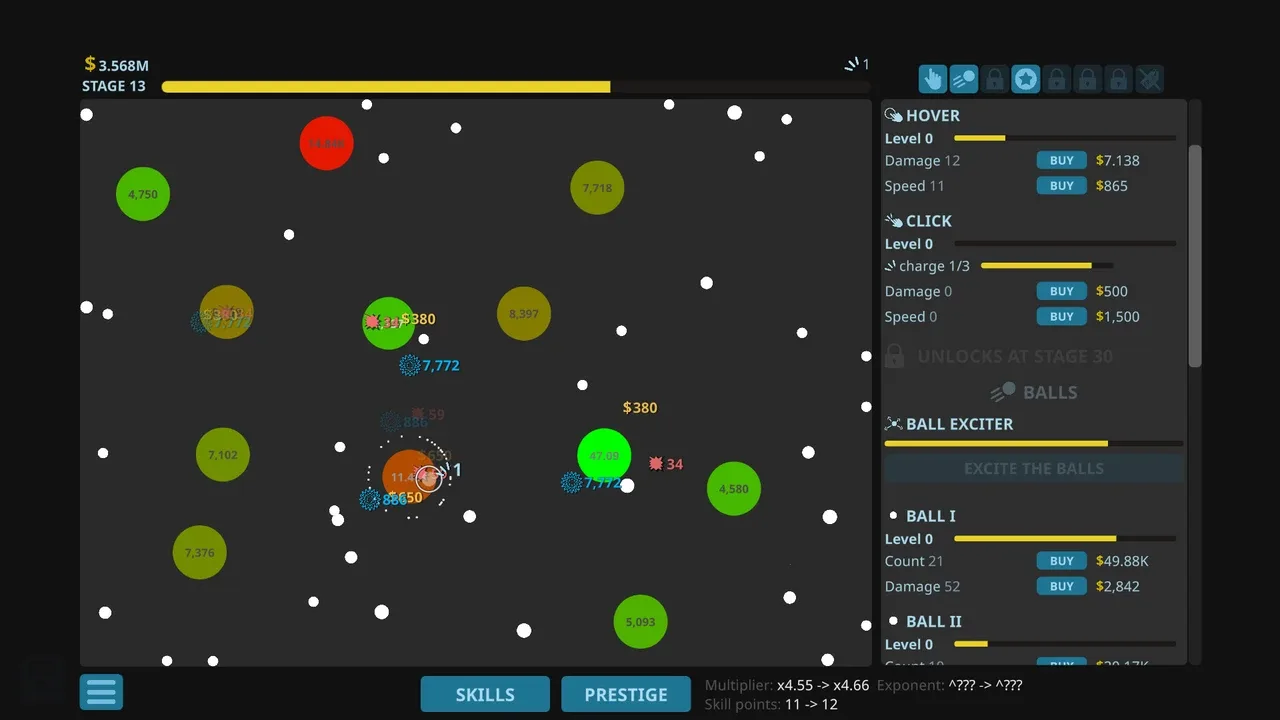 Ballatory es un juego corto y 100% incremental en el que COMPRAS, ACTUALIZAS, PINTAS, ¡y observas cómo tus BOLAS rebotan, golpean los núcleos y te hacen ganar dinero!