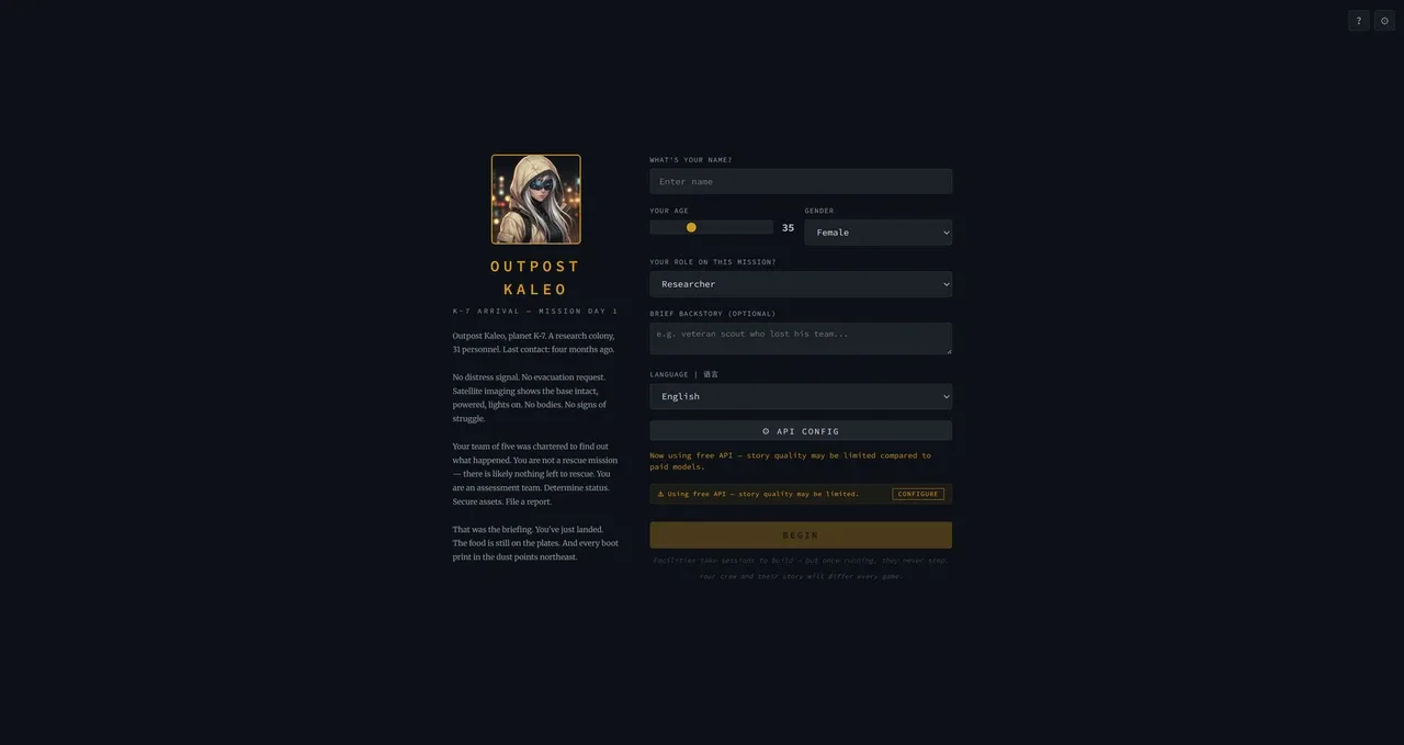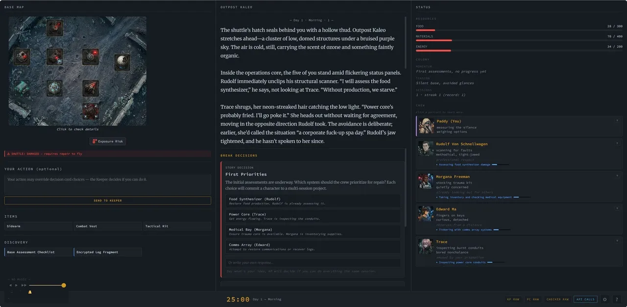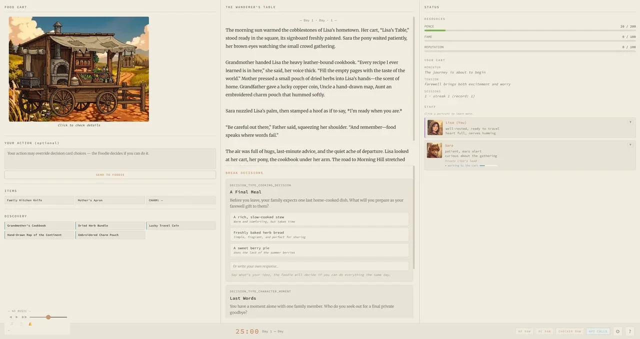 Un RPG narrativo impulsado por la IA que crece junto a tus sesiones de concentración. Establece una tarea de la vida real, empieza un Pomodoro de 25 minutos y vuelve a un nuevo capítulo escrito mientras trabajabas. Elige un viaje de fantasía culinaria o un misterio de supervivencia de ciencia ficción. IA libre incorporada.