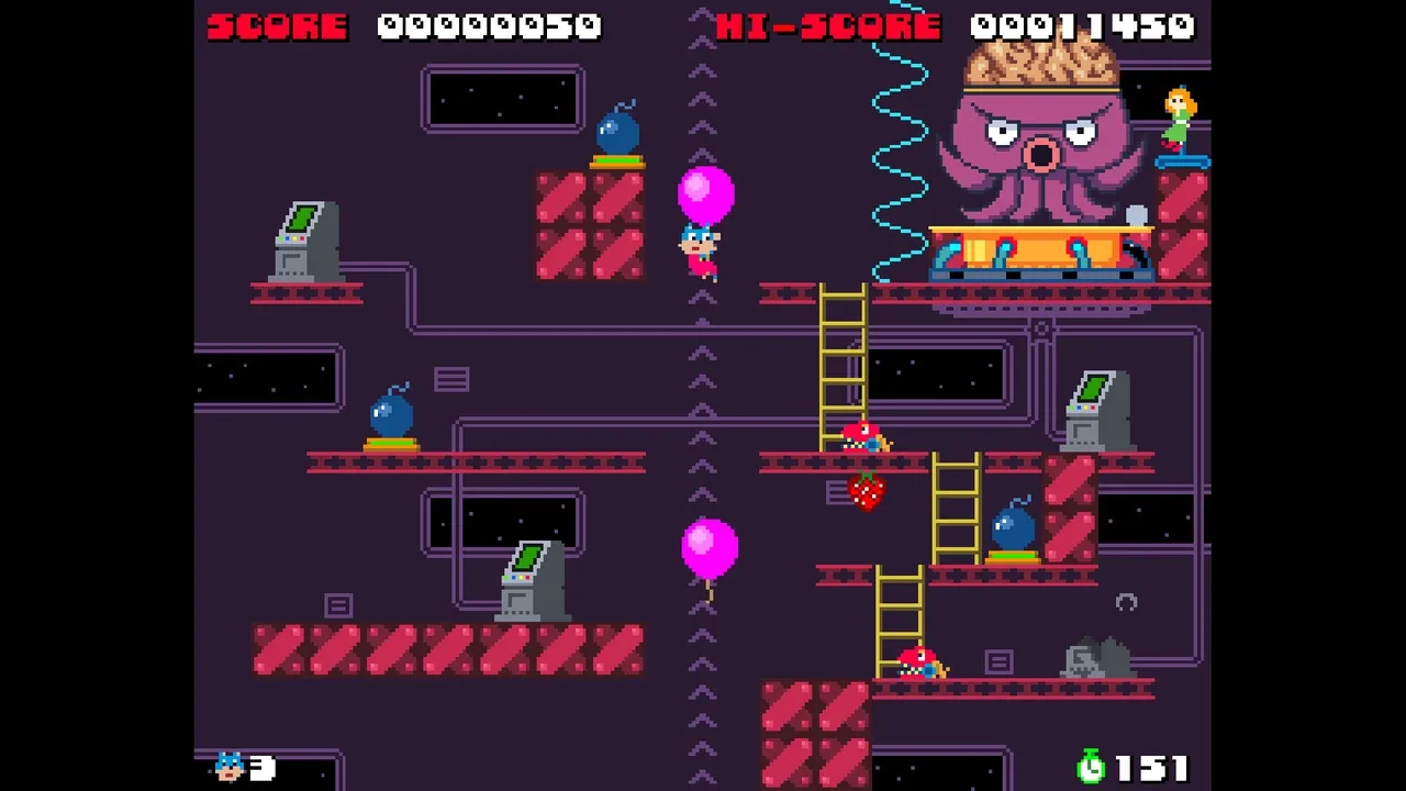 ¡Lanza bombas y avanza! En este juego de acción que despeja escenarios y respeta los salones recreativos de los 80, ¡rescata a la dama encarcelada en la fábrica!