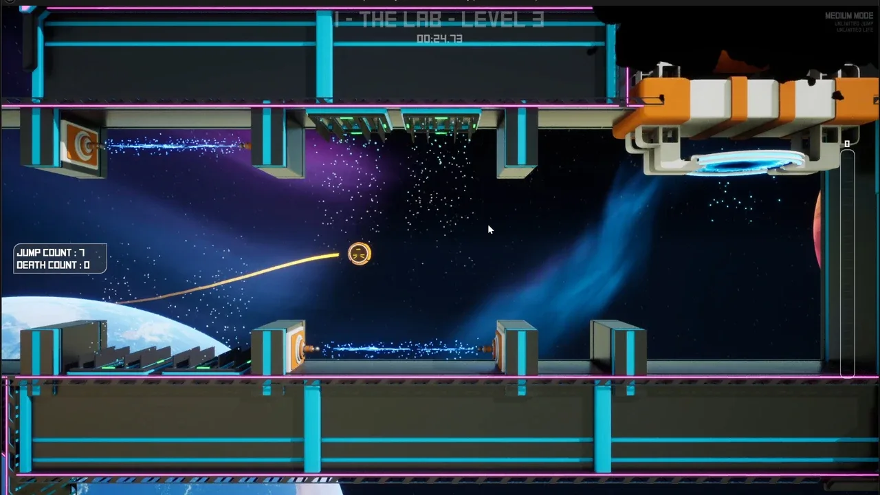 Un juego de plataformas basado en la física en el que guías a un robot saltarín a través de desafiantes niveles utilizando saltos precisos. Supera 480 fases a lo largo de 8 mundos, cada una de ellas superable en sólo 4 saltos. Incluye física de minigolf, 3 modos de dificultad, tablas de clasificación online y editor de niveles.