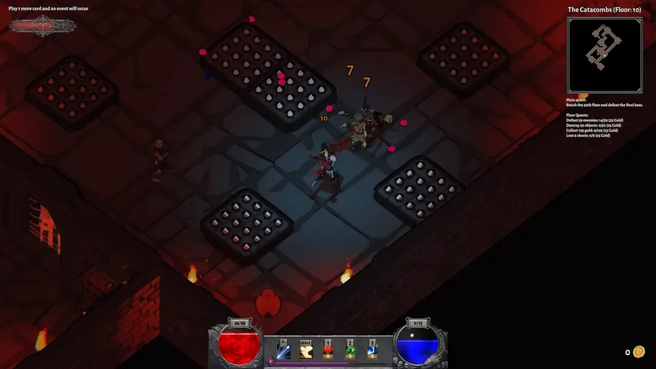 Cartas y Mazmorras es un juego roguelike de exploración de mazmorras que combina el juego estratégico de cartas con la acción trepidante. Elige a tu héroe, equipa tu mazo y desciende por mazmorras siempre cambiantes llenas de monstruos, trampas y jefes brutales. Cada carrera es una prueba de supervivencia, estrategia y gestión del riesgo.