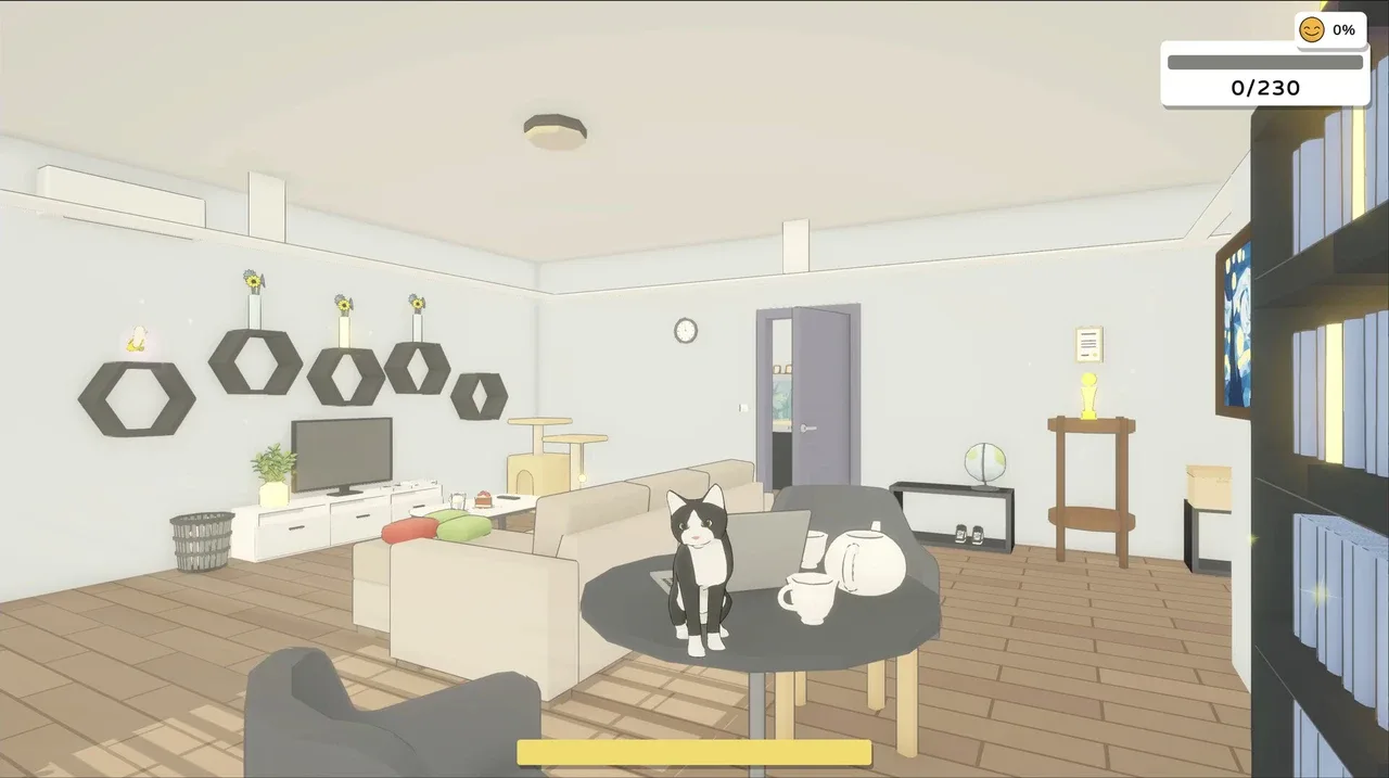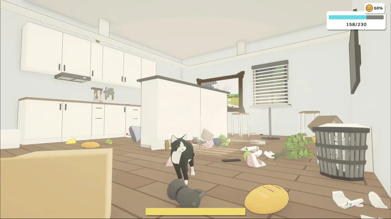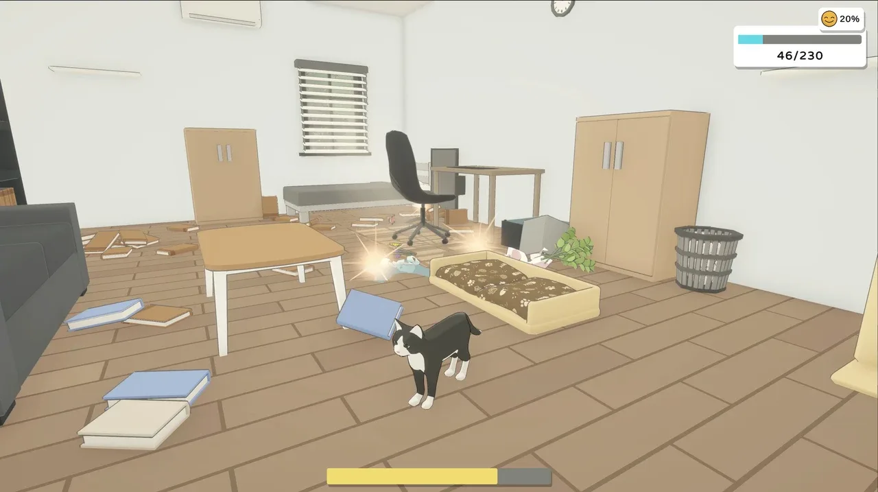 Knock things over, spin, play, and nap as a mischievous house cat.