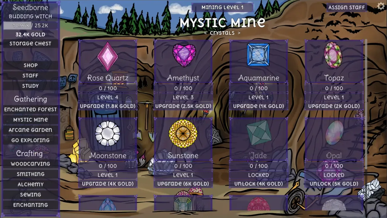 Charmcraft Idle es un acogedor simulador de tienda de brujas en el que reúnes recursos mágicos, elaboras productos encantados y automatizas lentamente cada parte de tu negocio de hechizos. Haz clic, elabora, estudia y contrata personal mientras tu humilde tienda de brujería se convierte en una empresa mágica.