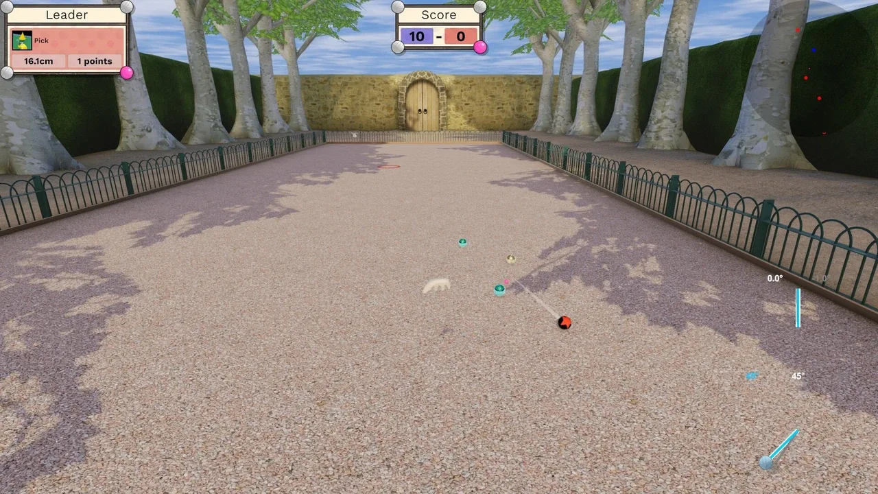 Juega a la petanca en línea con tus amigos, el tradicional deporte francés de lanzamiento de bolas en el que 2 equipos compiten por lanzar sus bolas de metal lo más cerca posible de la diana.