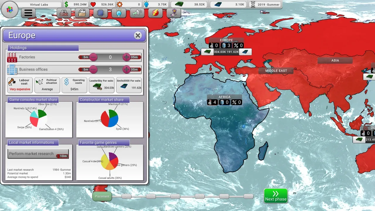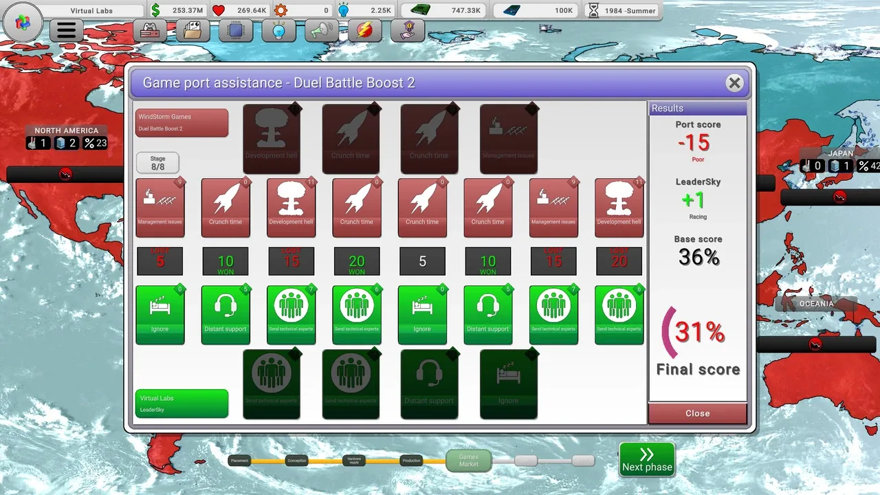 Console War Giant es un juego de gestión por turnos que te pone al mando de una joven empresa productora de consolas de videojuegos Corre el año 1980 y la industria del videojuego está aún en pañales. ¡Reclama un lugar bajo el sol!