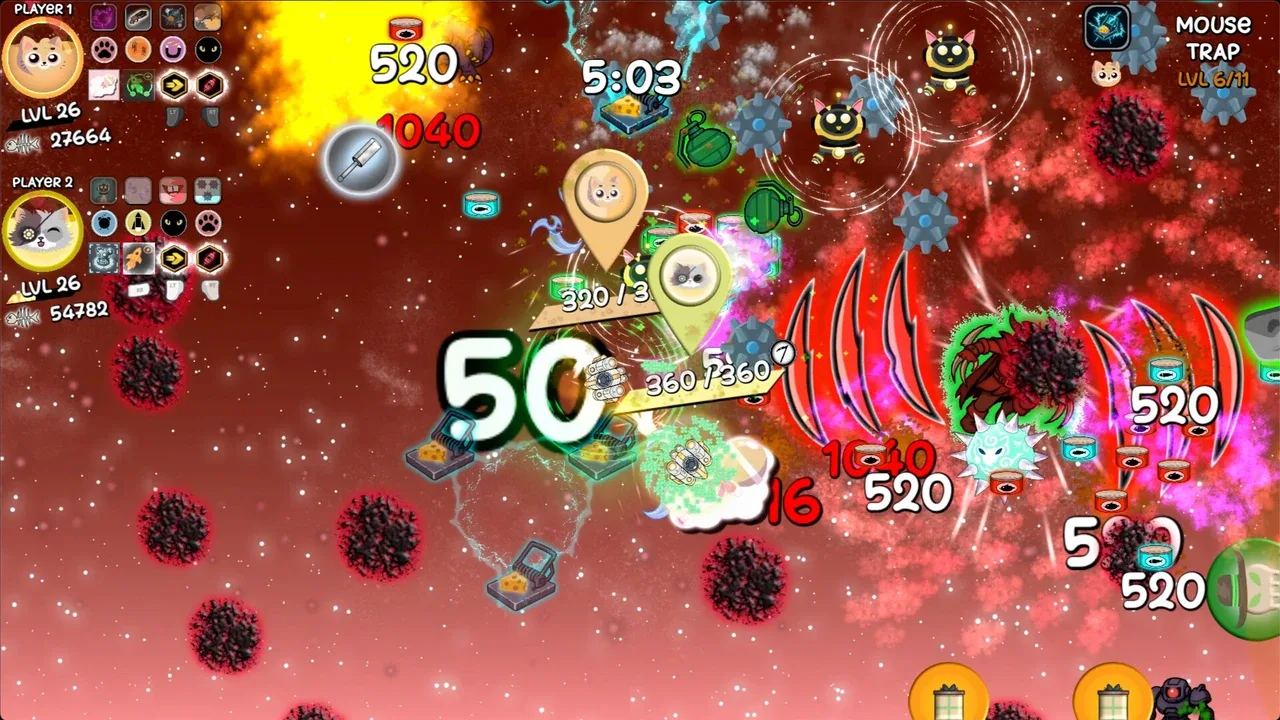 Conviértete en el Gato Cazarrecompensas. Despega por el espacio profundo mientras diezmas hordas de criaturas espaciales con recompensas sobre sus cabezas. Mejora tus habilidades gatunas únicas, desbloquea armas pulverizadoras y sobrevive hasta que expire tu contrato, o únete a las filas de los cazarrecompensas caídos antes que tú.