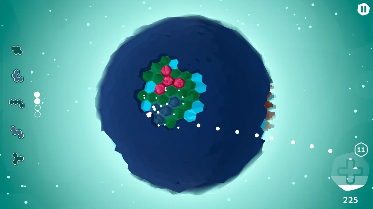 Embárcate en una relajante expedición cósmica. Usa tus habilidades estratégicas para transformar planetas estériles en mundos vibrantes, bloque a bloque.
