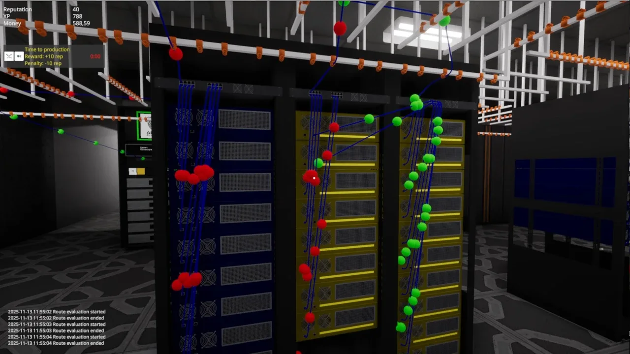 Build, cable, and automate. Assemble racks, servers, and switches, connect enough capacity for each app, earn money from processed data, and unlock gear and bigger customers with XP and reputation. Follow colored data packets as your center comes to life.