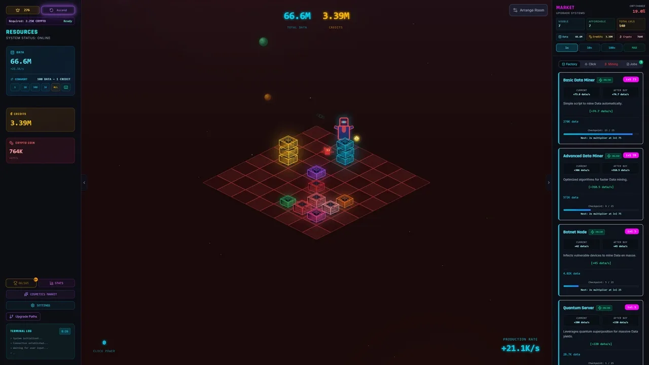 Featuring neon-styled visuals, escalating difficulty systems and reactive mechanics, DataFall challenges players to balance greed, efficiency and survival.