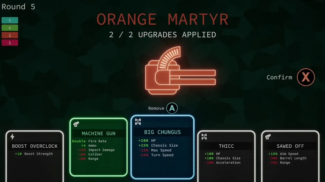 Deck of Treads is a chaotic 2–6 player tank brawler with a deckbuilding twist. Stack upgrades that transform how your tank looks — and how it fights. Each match spirals into unpredictable mayhem, packed with ridiculous, over-the-top tank builds!
