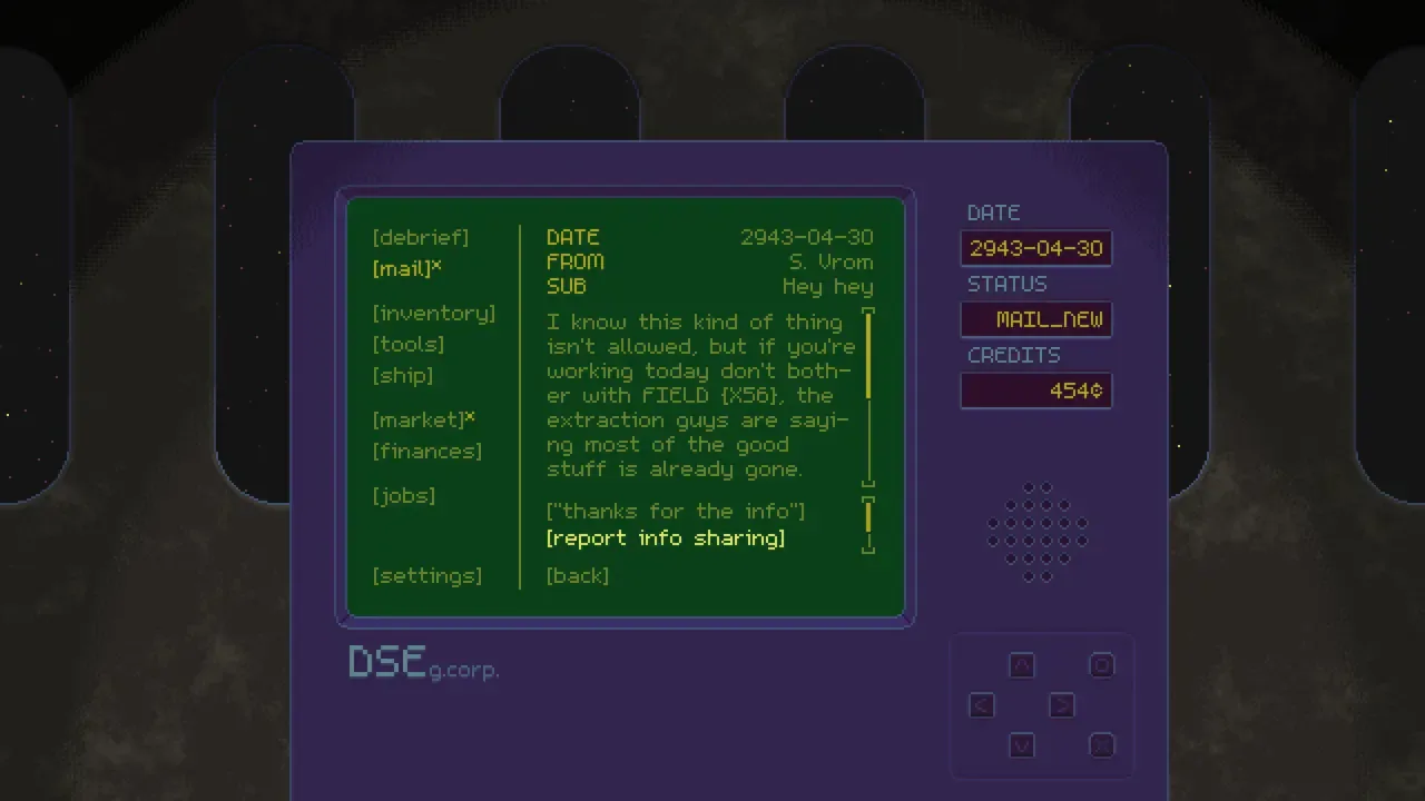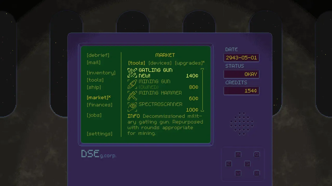 Explotación del Espacio Profundo es un juego de Física 2D Pixel Art sobre la minería de asteroides en el espacio. Los jugadores minan asteroides totalmente destructibles en el espacio profundo utilizando un equipo arriesgado mientras trabajan para una corporación explotadora. Las duras ganancias se utilizan para comprar nuevos equipos y mejoras, y asegurar el futuro de su piloto.