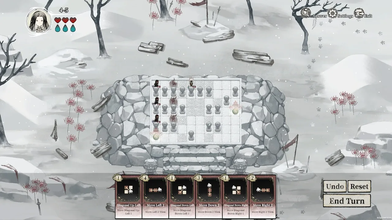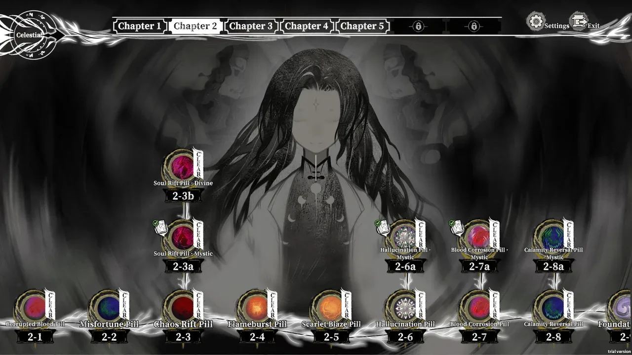 Un oscuro puzzle táctico en el que consumes veneno para ganar poder. En un mundo vacío de Qi, utiliza la [Previsión] para ver las intenciones del enemigo. Supera a tus enemigos con las [Cartas de Movimiento] y haz que caigan en trampas mortales. Información perfecta, nada de esquivar al azar. Sólo la estrategia pura te salva de la muerte.