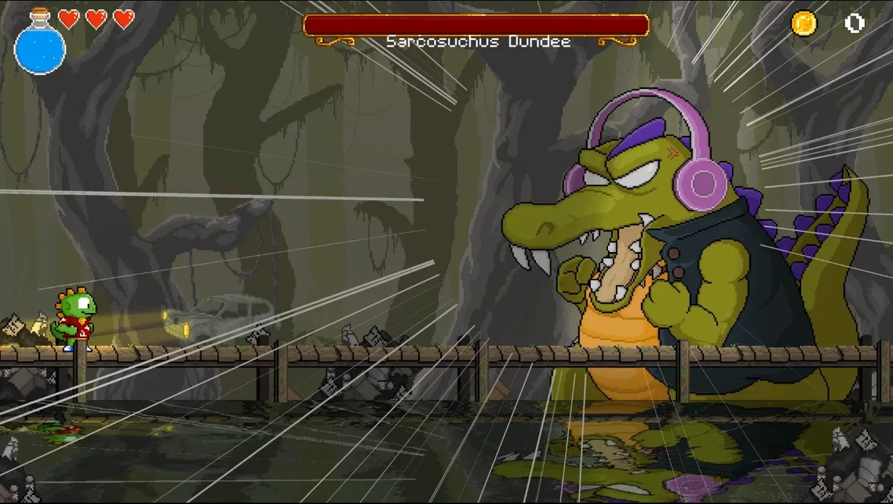 ¡Bienvenido a "Dinopunk: La Aventura de los Cacops"! Eres un dinosaurio anfibio con el poder del agua. Enfréntate a desafíos, recupera el huevo robado a un ninja y surfea en campeonatos. ¡Te espera acción jurásica en 2D!