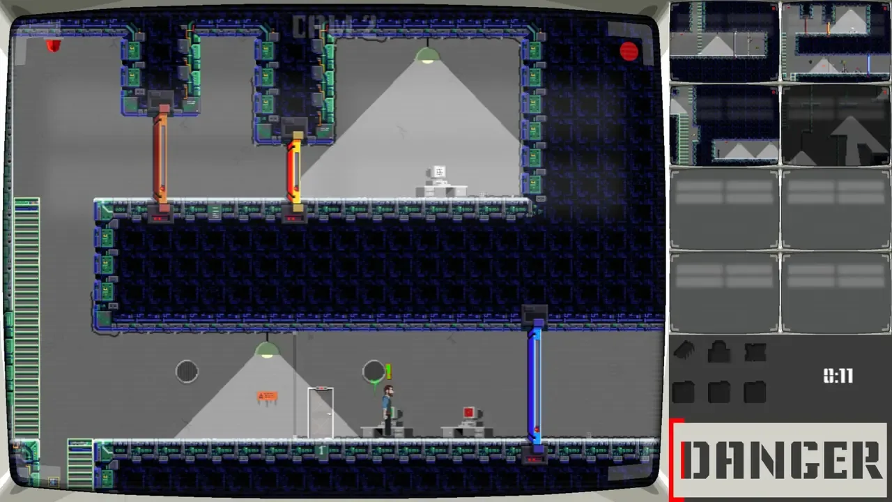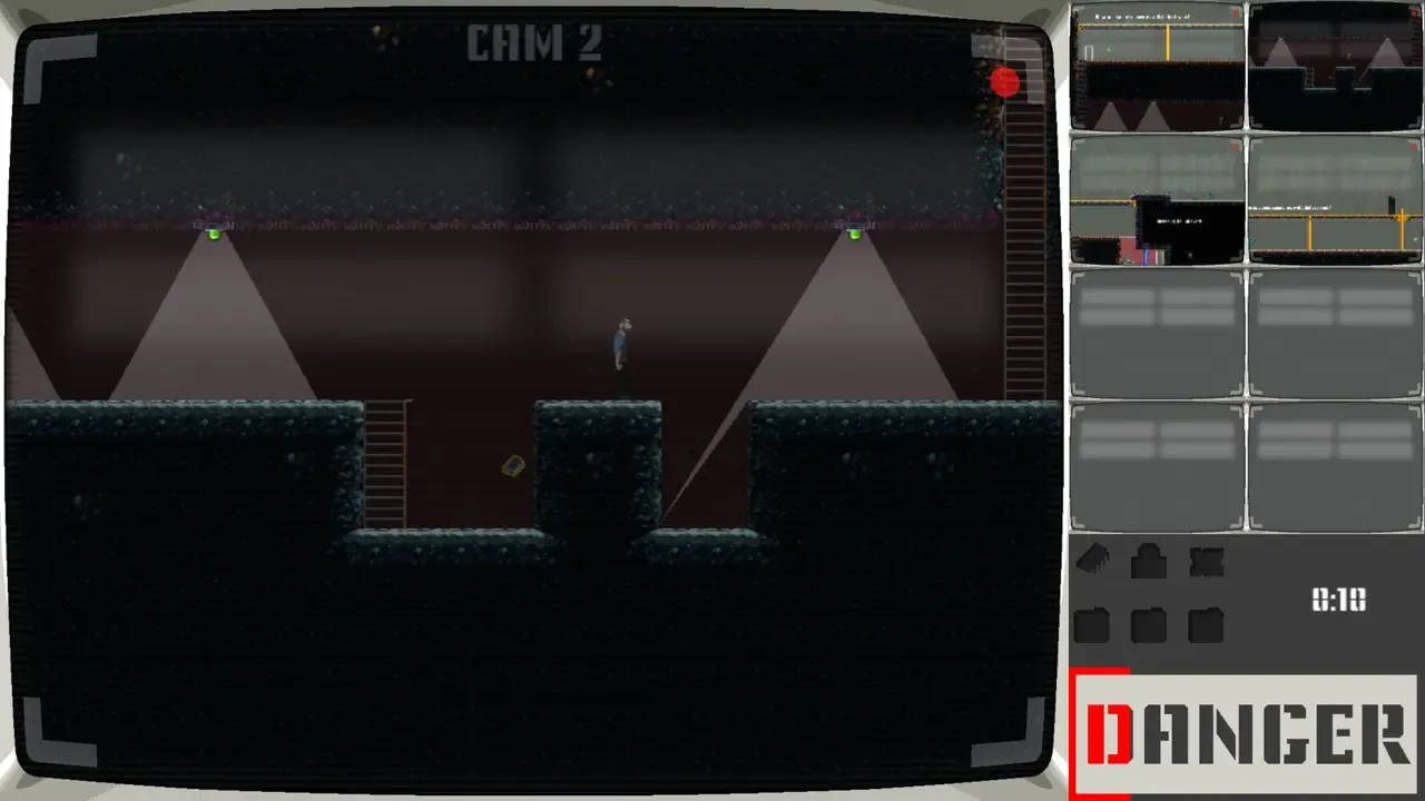 A stealth platformer where you control both the hero and the cameras. Evade security systems, manipulate switches and keycards, and outsmart the surveillance to escape a high-security lab.