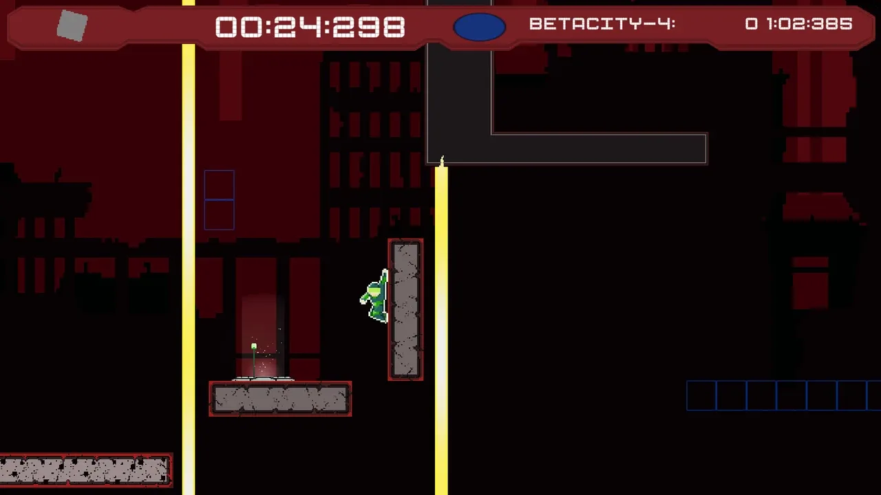 Un speedrunner retro en 2D donde cada segundo cuenta. Cambia de mundo, esquiva trampas, vence al reloj.