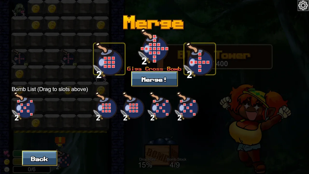 Dungeon Bomber is a chain-reaction roguelite where you place bombs and blow through the dungeon. Drop a bomb each turn, earn coins, and upgrade your deck. Fuse bombs to boost range and effects. Defeat advancing monsters and destroy the required blocks before your HP runs out.