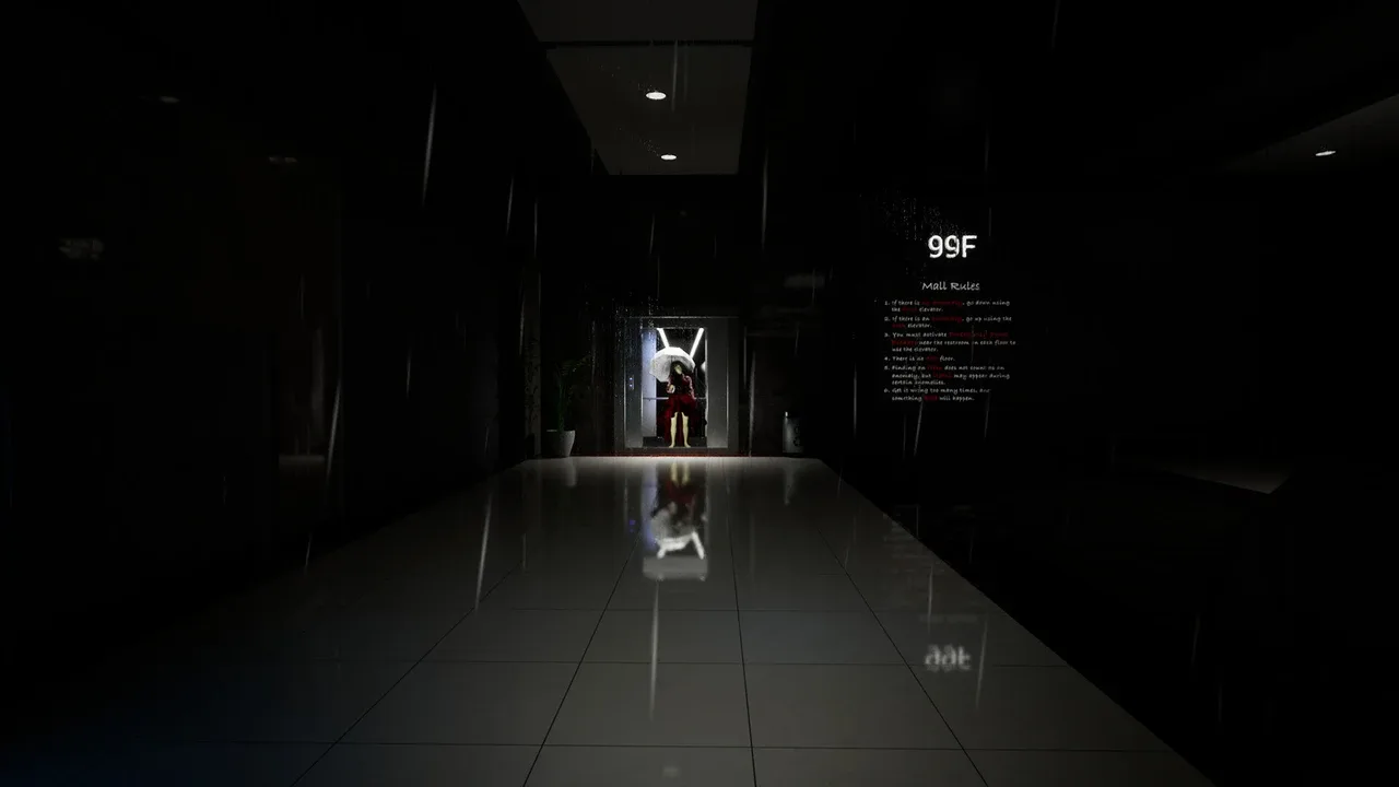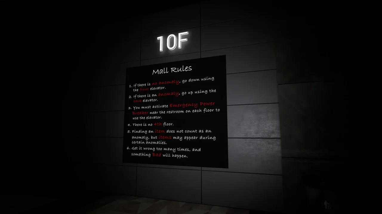 Despierta en un centro comercial cerrado y estás solo... ¿o tal vez no? Sin más salida que ir hacia abajo, debes descender utilizando el ascensor a través de cada planta.