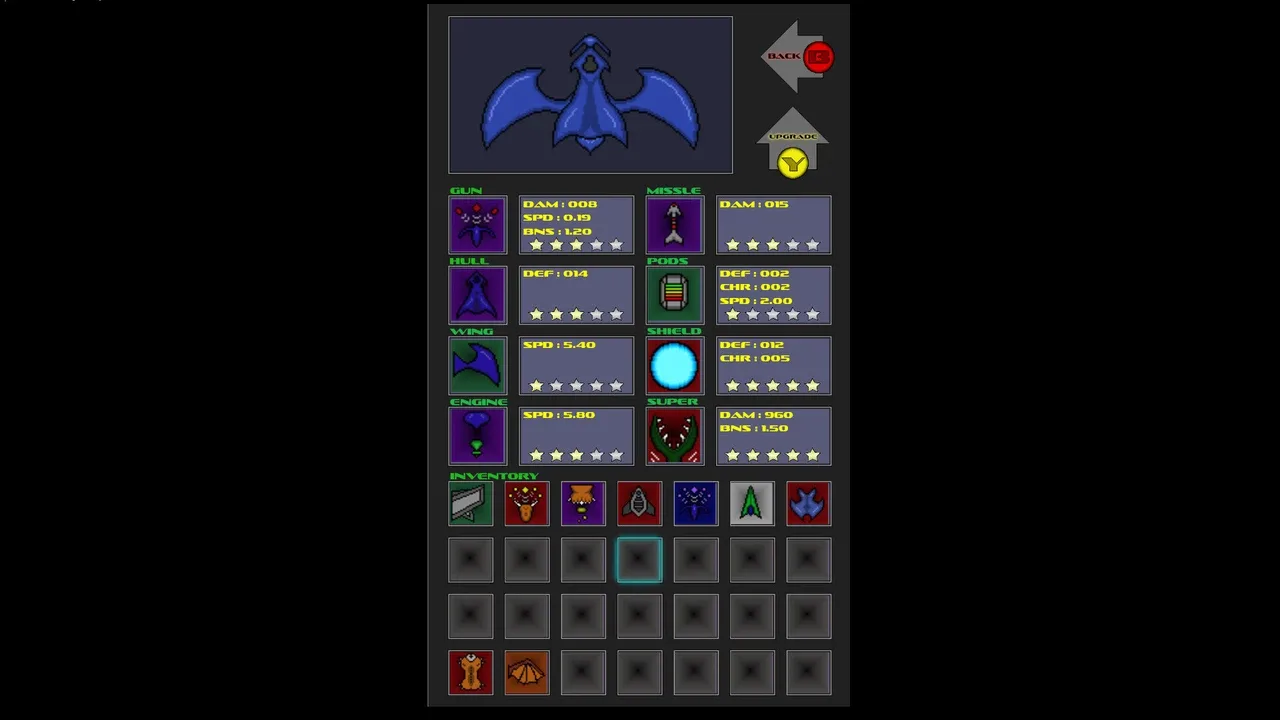 Un shoot 'em up vertical en 2D que te permite mejorar tu nave con una cantidad insana de opciones. Desde misiles y cápsulas hasta especiales y escudos, puedes mejorar cada parte de tu nave, desde las armas hasta los propulsores.