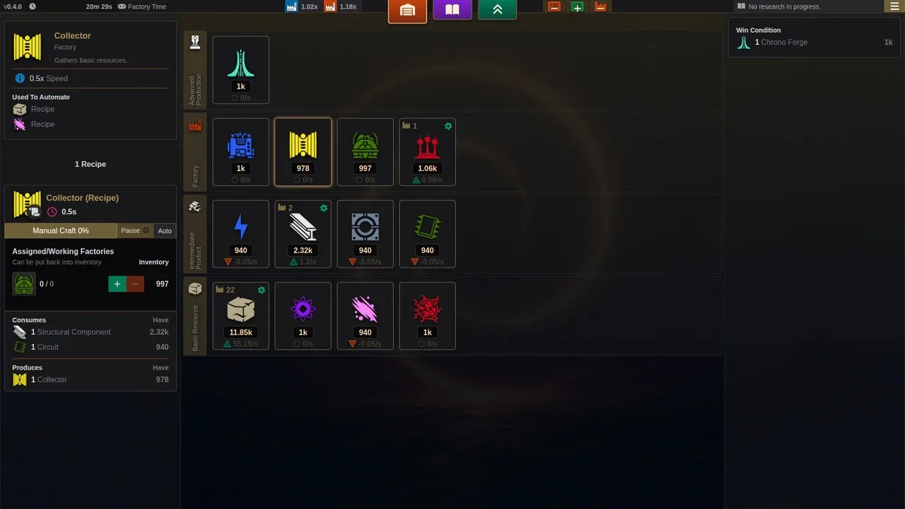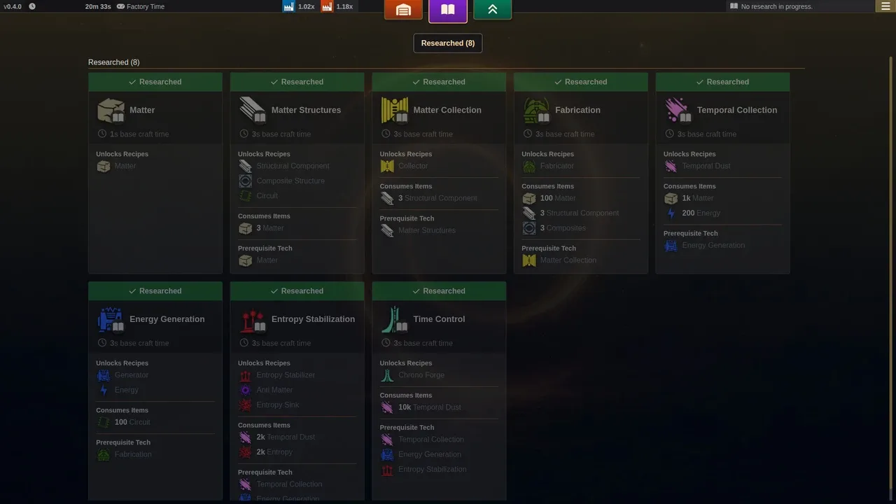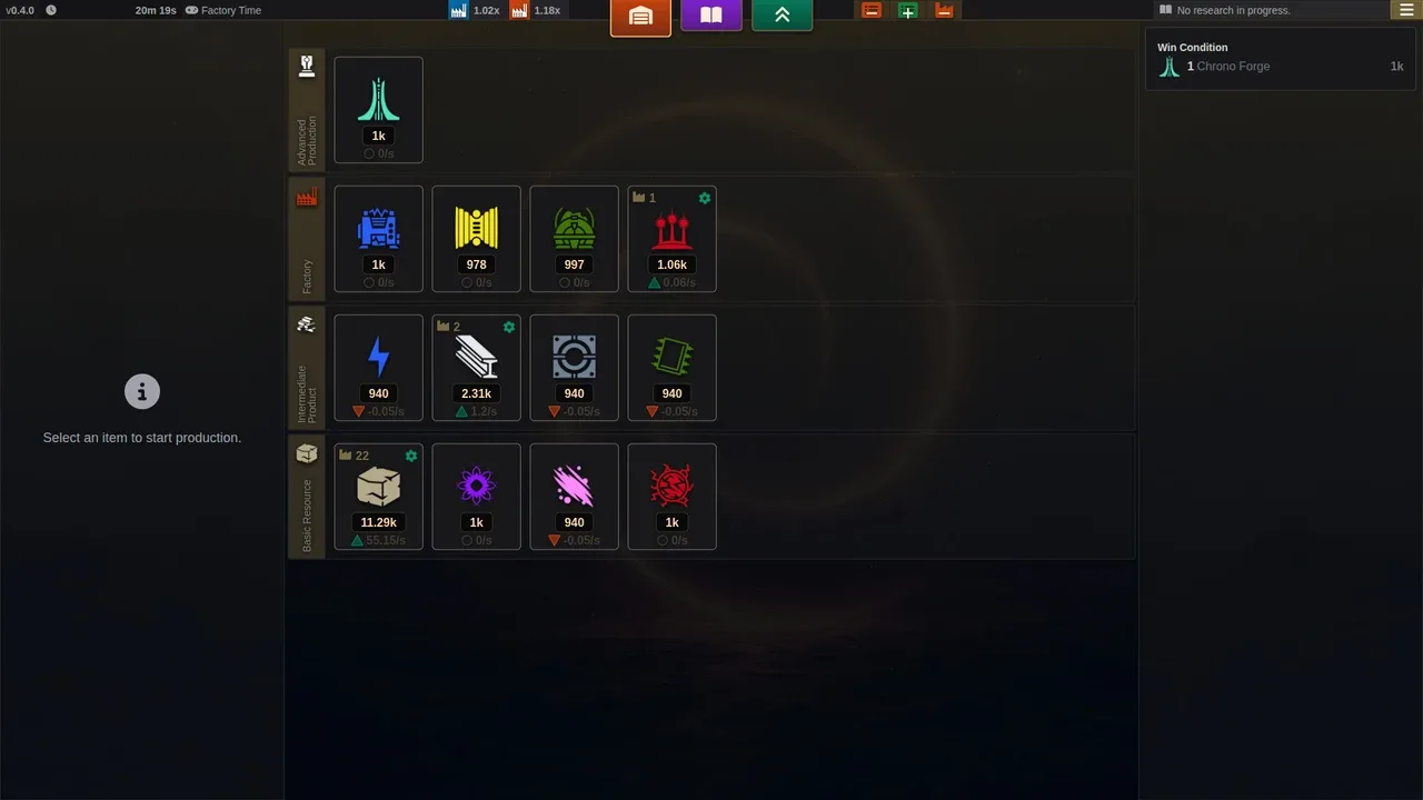 juego de automatización 2D ambientado en un bucle temporal. Sólo las fábricas ancladas en el tiempo y el conocimiento pueden atravesar múltiples bucles, hasta que se descubra una forma de escapar del tiempo. Gestiona las fábricas, la producción, la investigación y las bonificaciones para llegar al final. ¿Qué llevarás y qué dejarás a merced del tiempo?