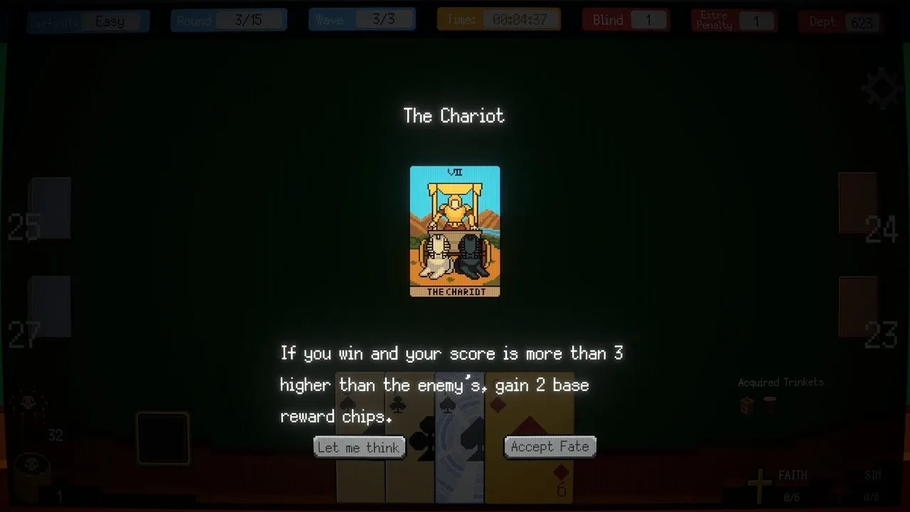 FAUST DUEL es un roguelike de construcción de mazos basado en el Blackjack. Juega como el Dr. Fausto, que perdió su apuesta y ahora se une a los juegos del Infierno. En un número limitado de rondas, gana suficientes fichas para comprar de nuevo tu alma a su amo.