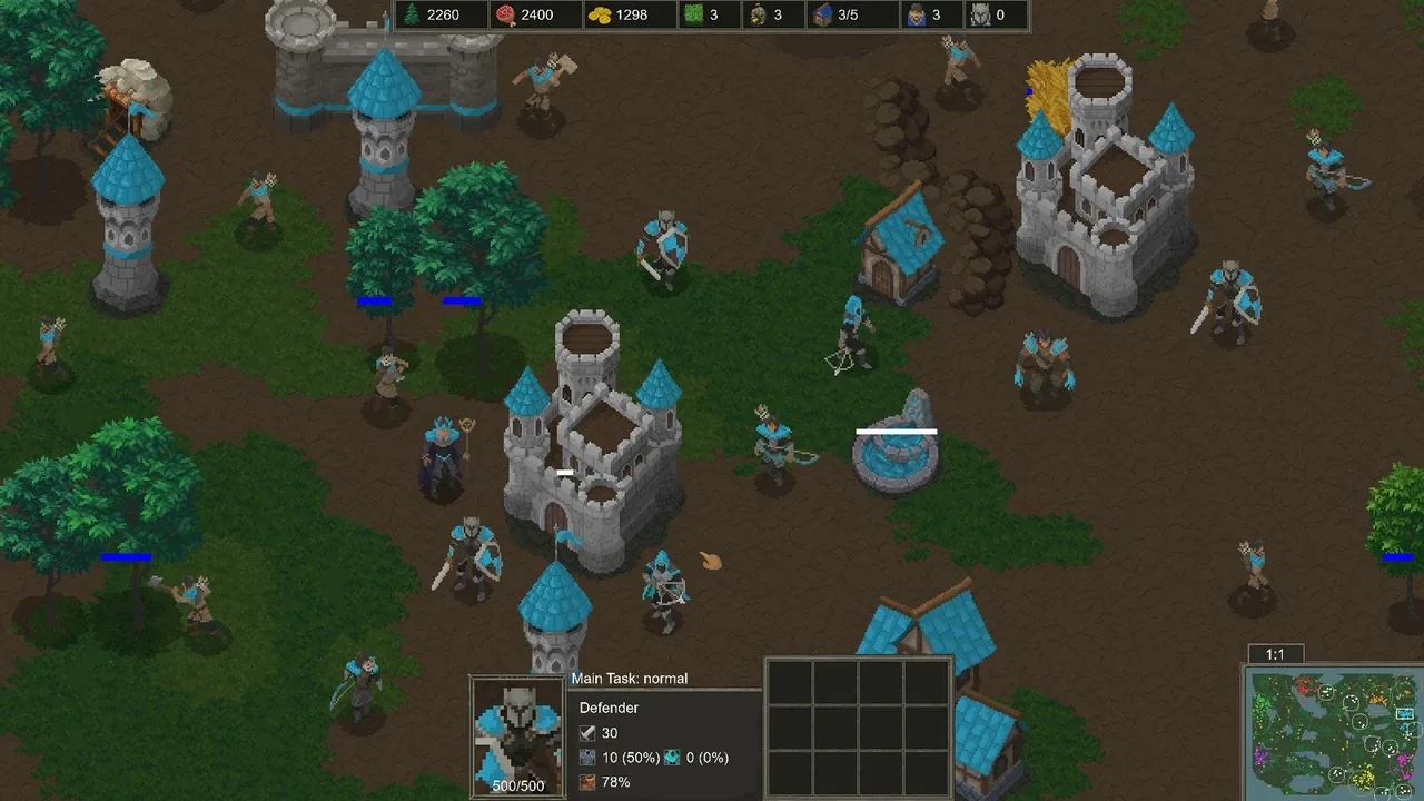 Un juego de estrategia en tiempo real clásico que incluye trabajadores y guerreros automáticos, liberándote para centrarte en la estrategia de defensa de tu base con una gran variedad de torres y muros. Crea un ejército con héroes y unidades tipo MOBA para contrarrestar los puntos fuertes de tus enemigos y asegurar la victoria en asombrosos mapas generados proceduralmente.