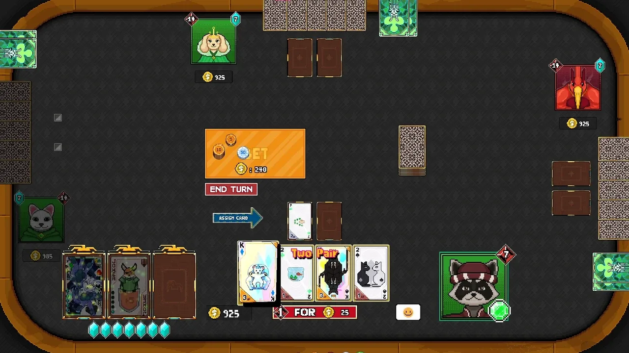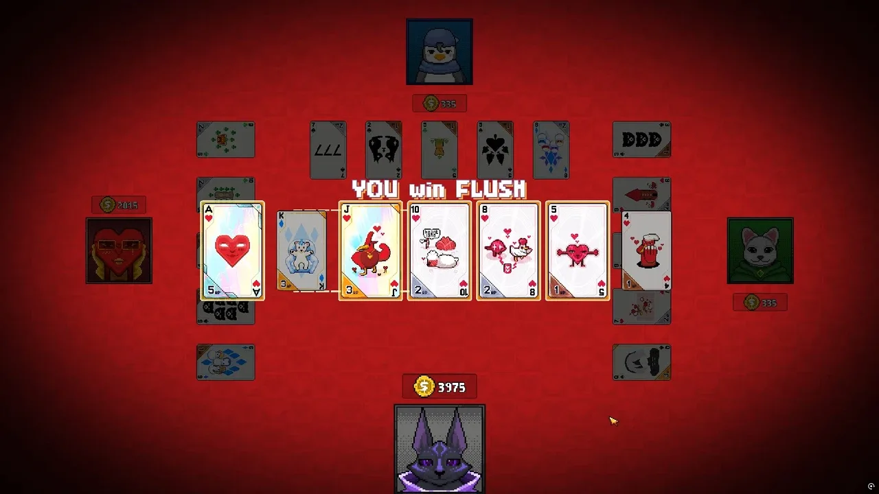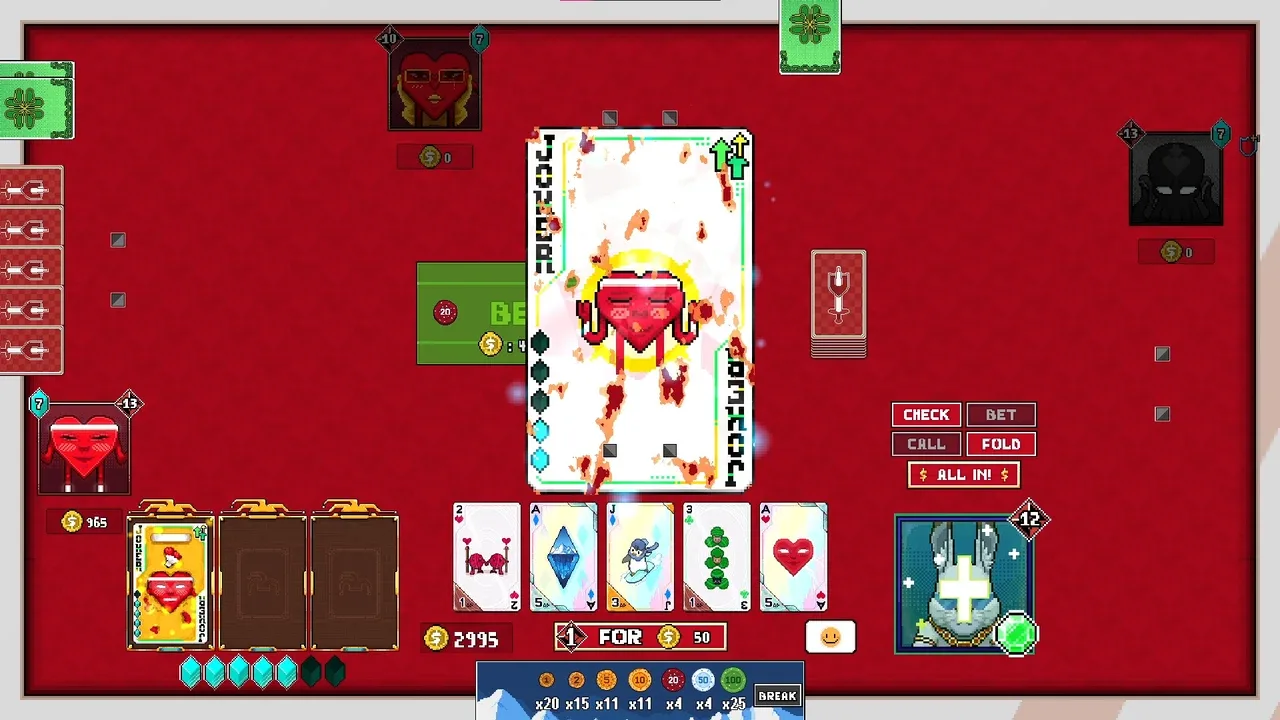 Draw a pair of aces, use them as poker hands or to eliminate your opponents? A poker roguelike battle card game. Build a deck of jokers, defeat bosses, modify cards, and conquer challenges across the ever-changing islands. At the table of four, win by chips or remaining health, your call...