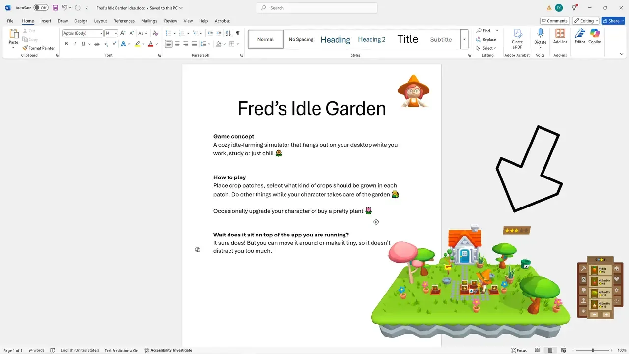 Fred's Idle Garden is an idle farming simulator which sits on your desktop while you do other things. Grow & harvest crops Grow various crops and watch the coins roll in! Use your shiny earnings to unlock even more crops, upgrade your characters abilities and buy some nice decorations for your garden. Expand your garden and farm more crops. Run your own little cozy shop Once you have grown and harvested your crops, you’ll also need a place to sell them! Manage your shop, making sure it's stocked with the crops your customers crave. Keep them happy, and watch your little business thrive! Decorate your garden Decorate your garden with plants and trees to create your own cozy little place. Fully automated Fred's Idle Garden is a great game for farming multitaskers! Your character does all the hard farm work while you do your own thing. You can place the game wherever you want on your screen, zoom in and out, and it'll quietly do its thing without getting in your way. When you feel like it get back and add new things to your garden or upgrade your character.