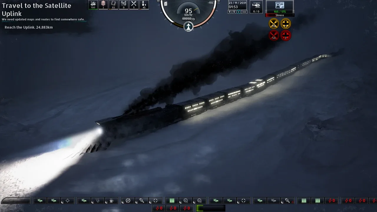 The moon shattered. The world froze. Take command of a nomadic train city hurtling through a war-ravaged frozen wasteland. In this survival city builder on rails, gather survivors, scavenge resources, and do whatever it takes to keep the engine running and stay ahead of the frost.