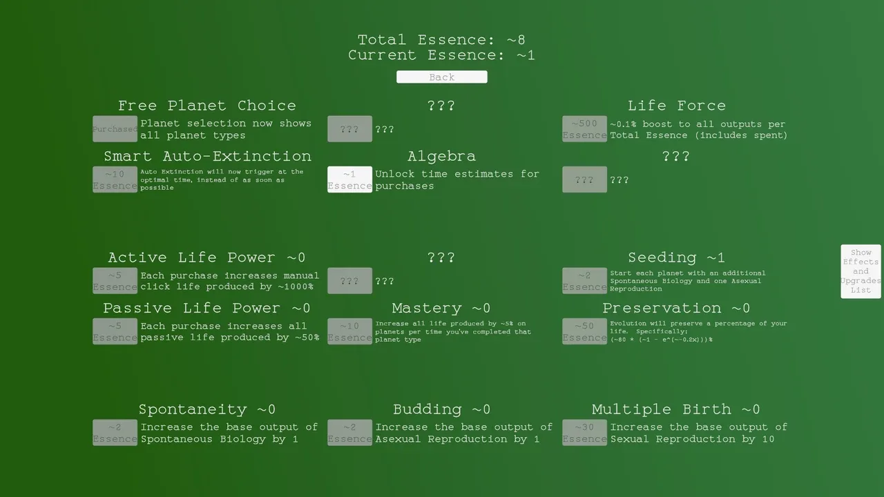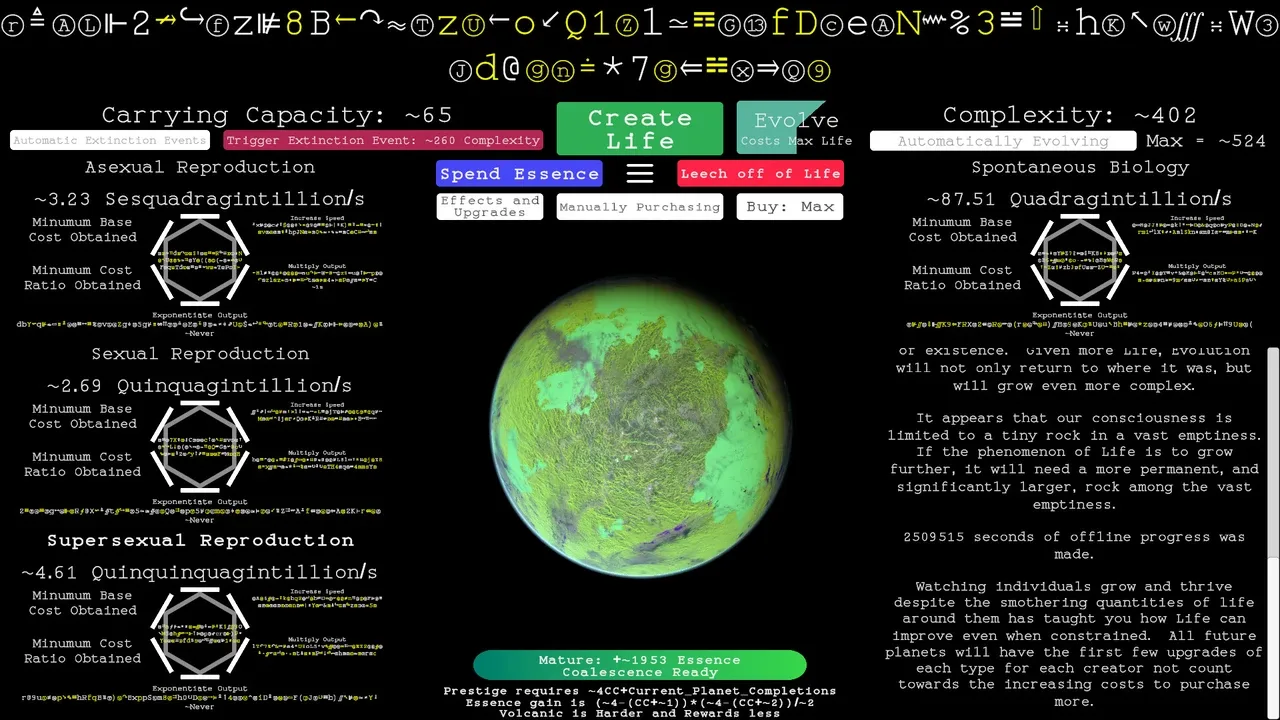 Un juego incremental con conteo no estándar sobre la creación de vida. Porque la base 10 no tiene nada de especial.
