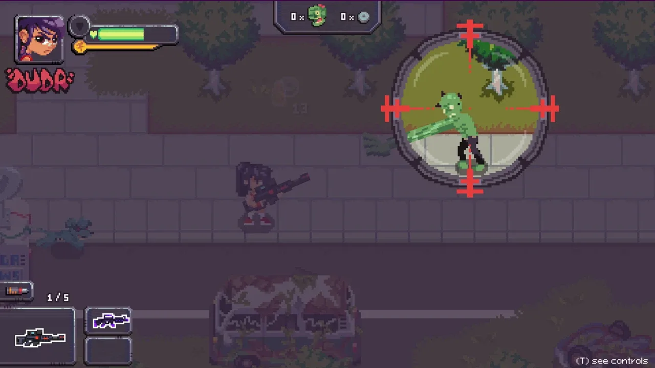 Espera ráfagas de viscosidad zombi verde pintando la pantalla en este shooter de arriba abajo repleto de armas locas que vuelan las cabezas de unos zombis... raros. Tu misión es sencilla: grafitear toda la ciudad antes de que estos mutantes te acribillen.