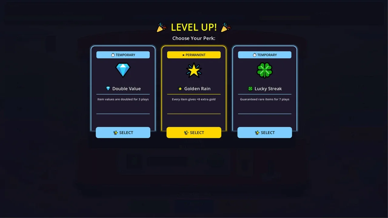 Survive with surprise gifts dropping from the machine! Sell or use them. Maintain the balance between hunger and energy, manage your bank, grow with your credit card, and buy homes and cars. Every choice changes your fate. Survive the roguelike challenge by combining luck and strategy.