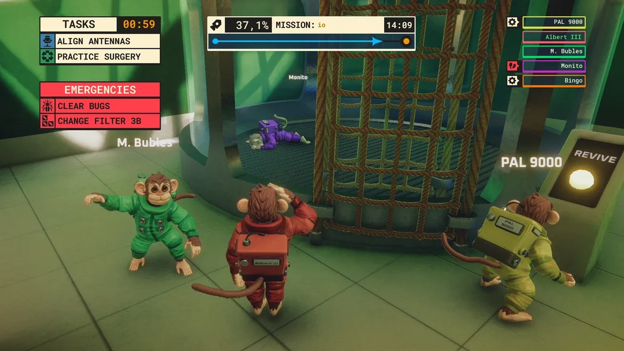Go Ape Ship! es un frenético juego multijugador cooperativo para uno a ocho jugadores. Trabaja con tu tripulación de atrevidos Astrochimps para dominar una creciente colección de tareas, responder a emergencias, desbloquear nuevas salas y mejoras para tu nave espacial, y llegar a salvo a las estrellas. Sobrevivid juntos. O no.