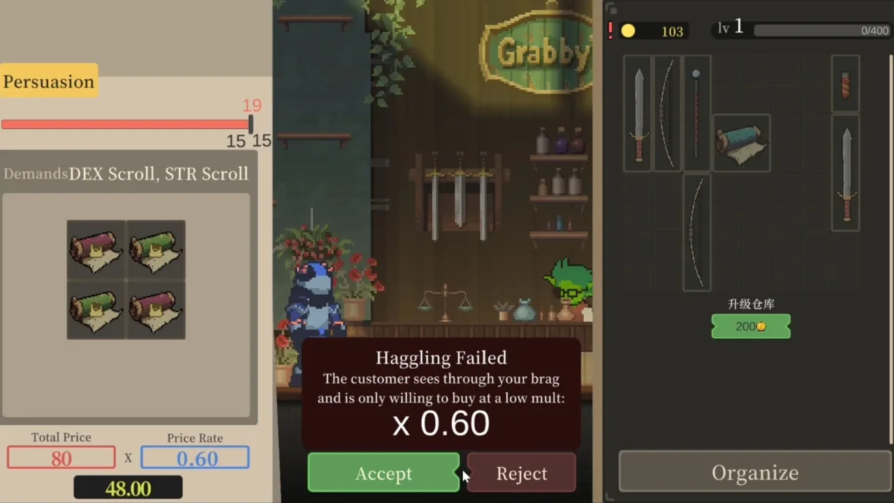 De noche, eres un ladrón, que se cuela en las mazmorras para robar mercancías. De día, eres un astuto mercader, regateando para vender a precios elevados. Domina el arte del sigilo, roba los tesoros ocultos del Señor de los Demonios. Recluta empleados, expande tu negocio. ¡Pasa de ser un duende sin dinero a un magnate del mercado negro!