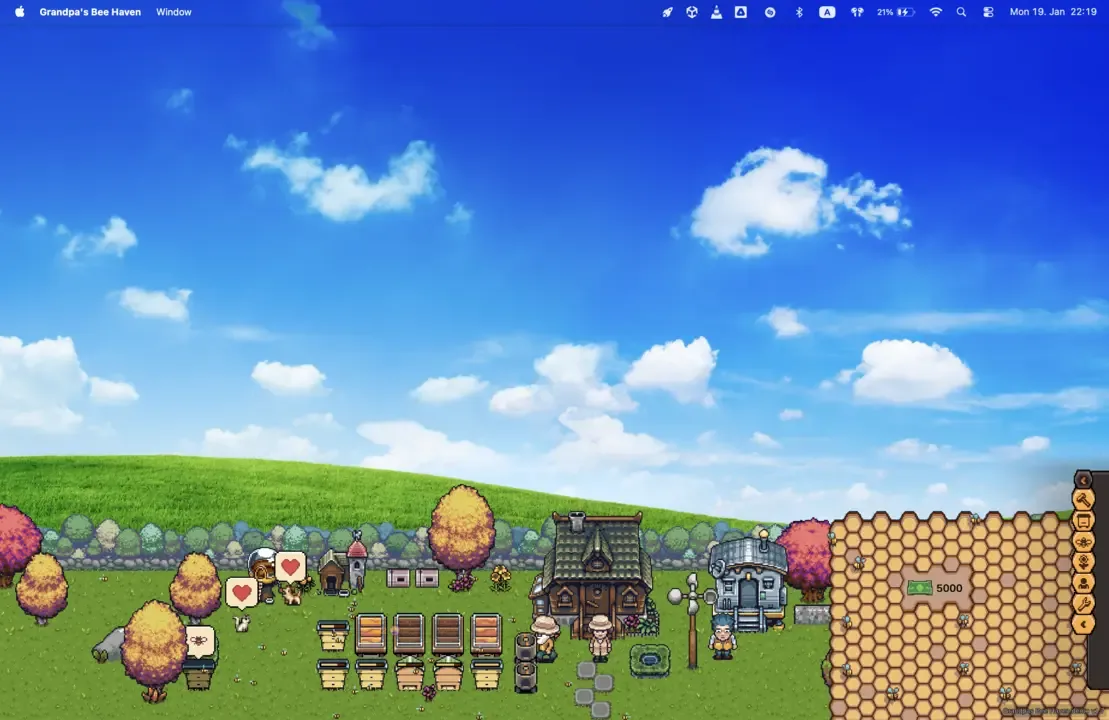 Grandpa's Bee Haven es un simulador de apicultura que se sitúa en la parte inferior de tu pantalla, permitiéndote hacer otras cosas mientras gestionas tu refugio de abejas.