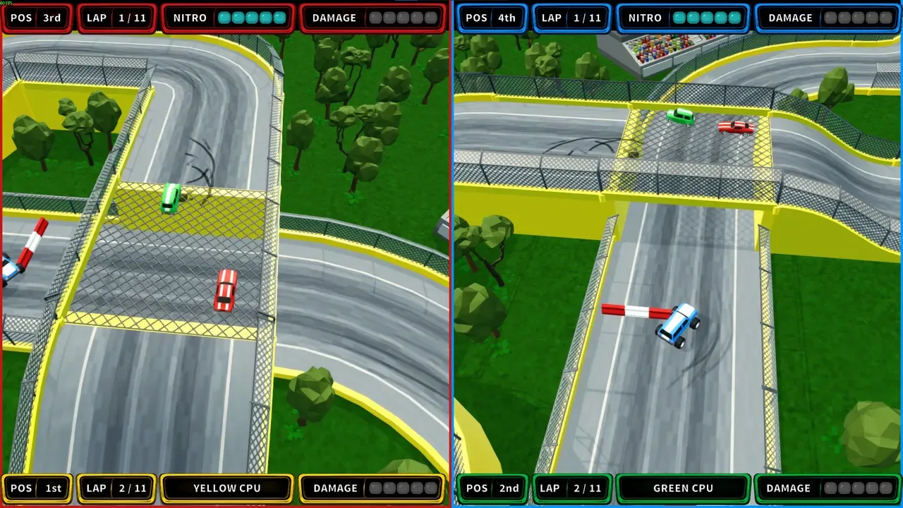 Un arcade de carreras multijugador local de inspiración retro en el que eliges un coche, corres solo o con hasta 4 jugadores en una pantalla, y luchas en pruebas cortas y trepidantes con un manejo fácil de aprender pero difícil de dominar. Incluye tres modos de cámara, coches distintos, carreras individuales, Contrarreloj, Copas de varias carreras, y un editor de circuitos integrado con pruebas de conducción, además de compartir el código de los circuitos para personalizarlos.