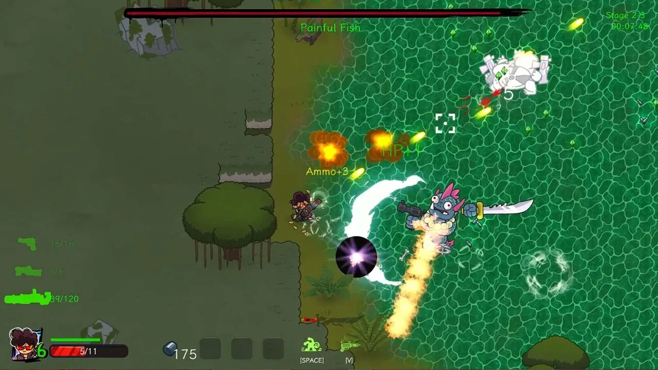Gunblade Ranger is a post-apocalyptic Roguelike top-down shooter. You will use guns and blades to hunt monsters in randomly generated radiation zones, collect mutant abilities, break into the source of the radiation, and face the final challenge.