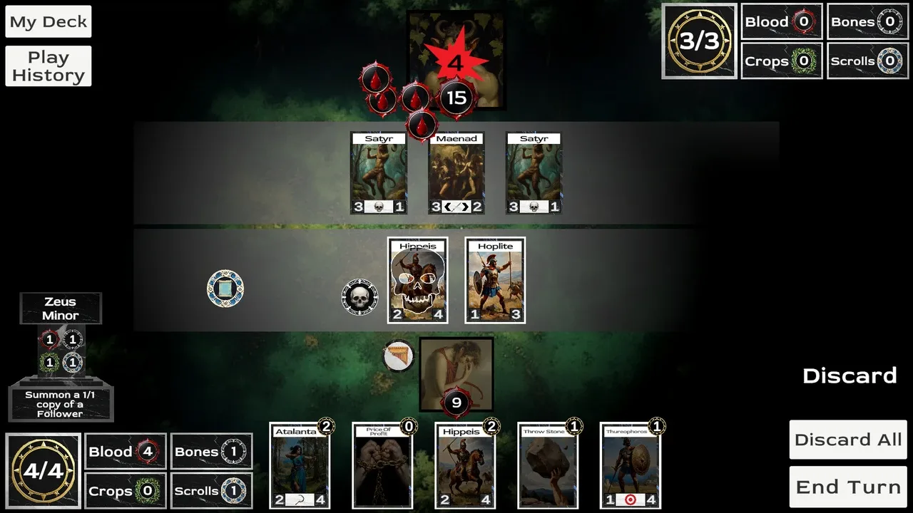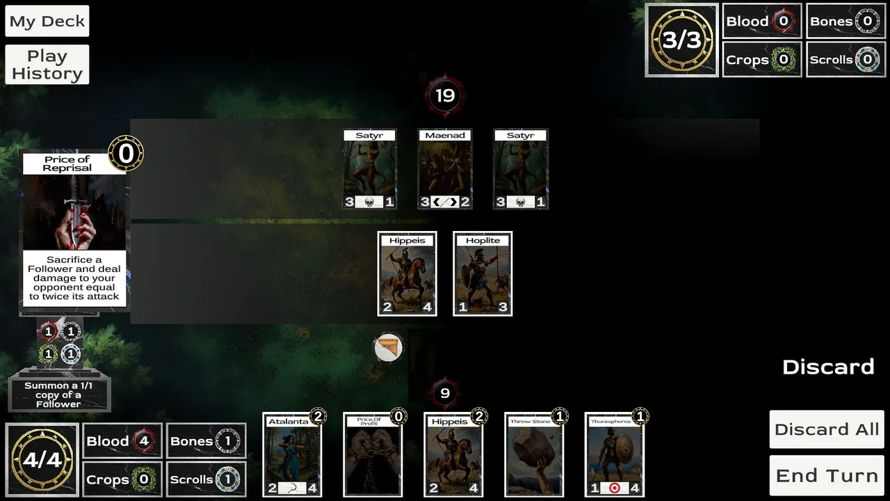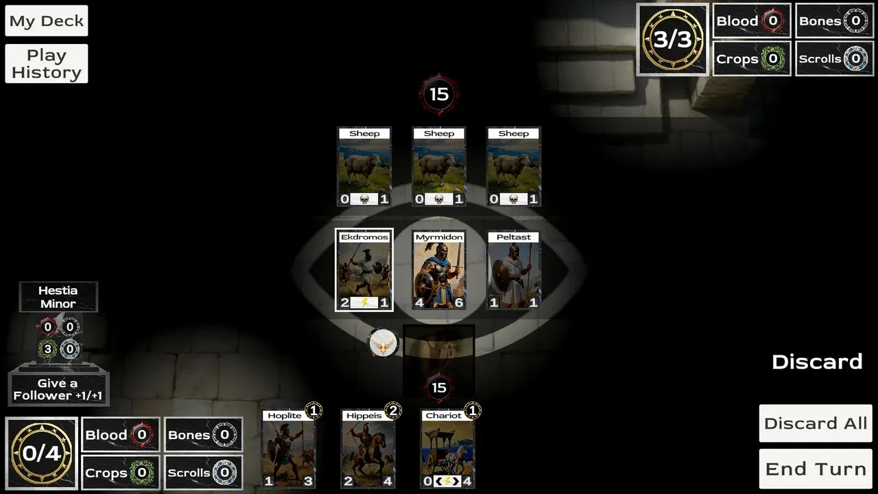 Hecatomb es un roguelike mítico de construcción de mazos que pone a prueba cuánto estás dispuesto a sacrificar. Cada acción produce Ofrendas, que pueden entregarse a los Dioses a cambio de poderosos efectos. Pero qué Dioses adoras y cuáles desprecias tienen efectos duraderos en tu viaje al Inframundo.
