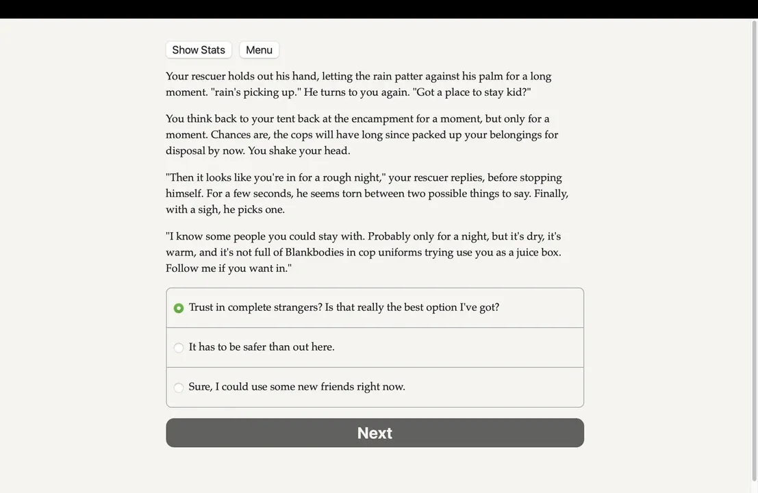 Topple the vampires from the streets below! Will you unite the homeless, the gangs, and the secret hunter societies to defy vampiric rule? An interactive novel set in the World of Darkness extended universe.