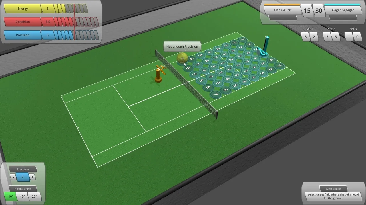In this turn-based, tactical tennis simulation you build, control and improve your own tennis robot. Play on grass, clay and hard courts and balance your energy, precision and condition throughout the match. Maintain and develop your robot between matches.