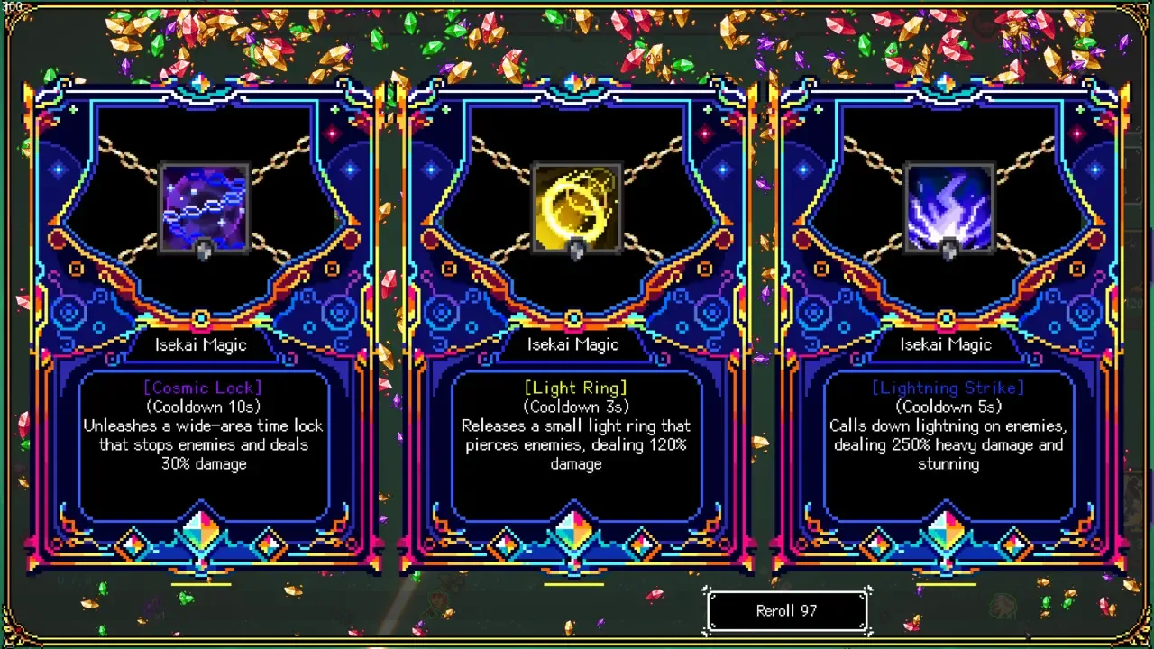 "Isekai HKV" es un roguelike 2D pixel-art de vista cenital que gira en torno a VTubers que viajan a otro mundo. Los jugadores asumen el papel del héroe "DD", consiguen la habilidad "Gacha ilimitada" y se aventuran con los VTubers para derrotar al Rey Demonio