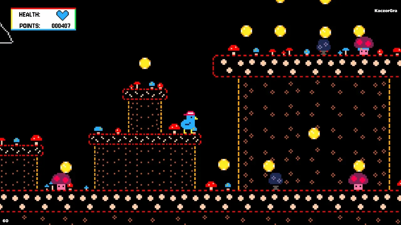 Joey The Duck es un juego de plataformas lineal y de niveles abiertos. Únete a Joey mientras explora diferentes lugares dentro de un nivel grande y diverso. No te dejes engañar por su monada: Joey es un pato materialista y obsesionado con el dinero que se embarca en un arriesgado viaje por las Tierras Prohibidas en busca de un tesoro que puede que ni siquiera exista. No hay menú principal, ni mapamundi, ni mundo central: Joey sigue avanzando sin pausa para conseguir sus plumas en ese supuesto tesoro mítico. El juego presenta un estilo pixel-art minimalista, con la opción de cambiar entre los modos claro y oscuro, así como efectos como la simulación de TV CRT y el modo Blanco y Negro. Estos efectos pueden incluso combinarse para dar un toque retro adicional. Recoge monedas, salta sobre los enemigos, interactúa con el entorno y ¡consigue ese tesoro legendario! Características principales: Un gran nivel, cero interrupciones: sin menú principal, sin mapa del mundo, ¡sólo avanza! Modo claro y modo oscuro: ¡cambia de estilo cuando quieras! Efectos opcionales: juega con efectos de TV CRT o Blanco y Negro, ¡o incluso combínalos! Pixel art minimalista: ¡bonito y colorido! Juega como Joey - ¡Es avaricioso, es mono y es guay!