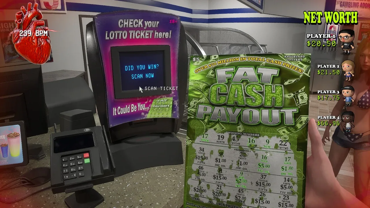 KEEP GAMBLING es un juego hostil entre amigos que incluye simulaciones de BILLETES DE LOTERÍA, OLAS, APERTURA DE CAJAS y ABUSO DE SUSTANCIAS. Vence a tus amigos y sé el primero en pagar tu deuda.