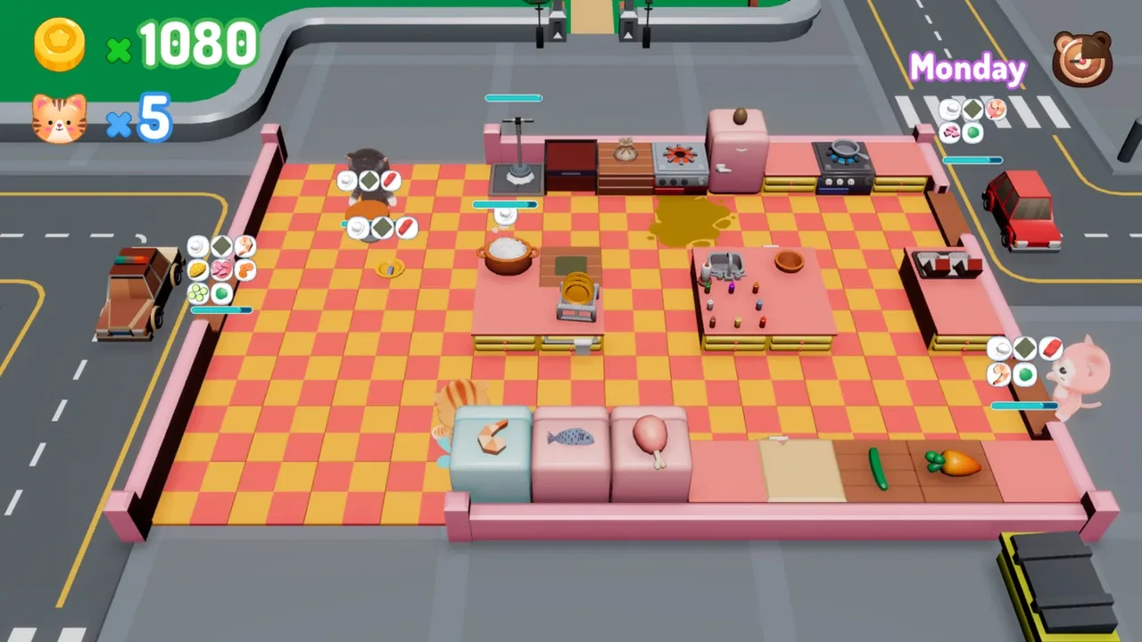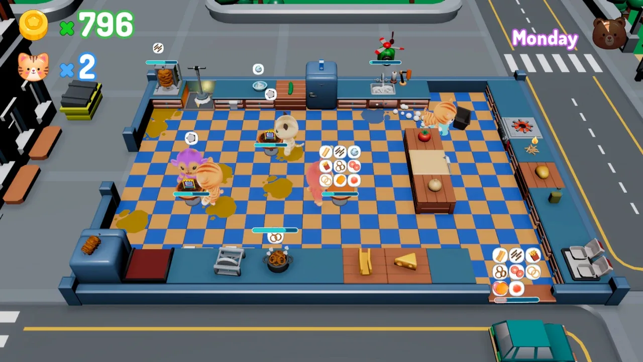 ¡Esta vez Kitty tiene grandes planes! Ayuda a Kitty a repartir comidas mientras gestionas el espacio y el tiempo. Pica, mezcla y lanza comida rápidamente, ¡con 8 recetas para dominar y desafiar! ¡El modo Olla a Presión sube la temperatura con disfraces desbloqueables! ¡Prueba la demo hoy mismo!