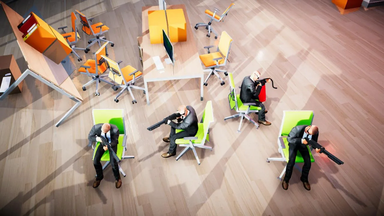 Un grupo de tíos se sientan en una oficina, todos con traje negro y camisa blanca de cuello. Todos se sientan en las mismas sillas giratorias verde lima. Para ser un videojuego, Last Man Sitting suena muy aburrido. Pero si añades escopetas y física de muñeco de trapo, tienes la receta para el único juego battle royale que queda por hacer.