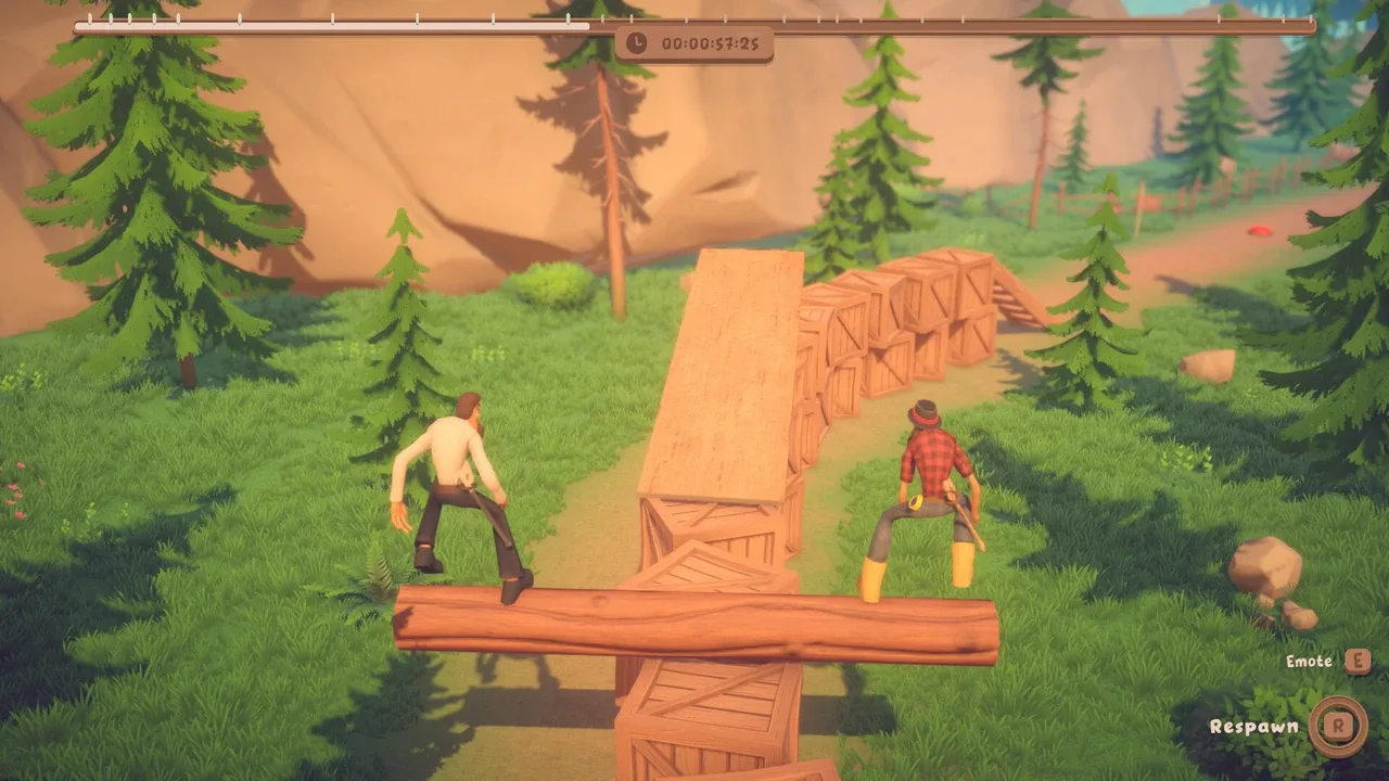¡Únete a una divertida aventura haciendo rodar un tronco juntos! En este juego de plataformas cooperativo para 2 jugadores, conviértete en leñador con tu amigo y mantén el equilibrio mientras avanzas sobre un tronco. Supera los obstáculos moviéndote hacia delante y hacia atrás, alcanza la meta y no te rindas nunca. Saber volver a levantarse importa.