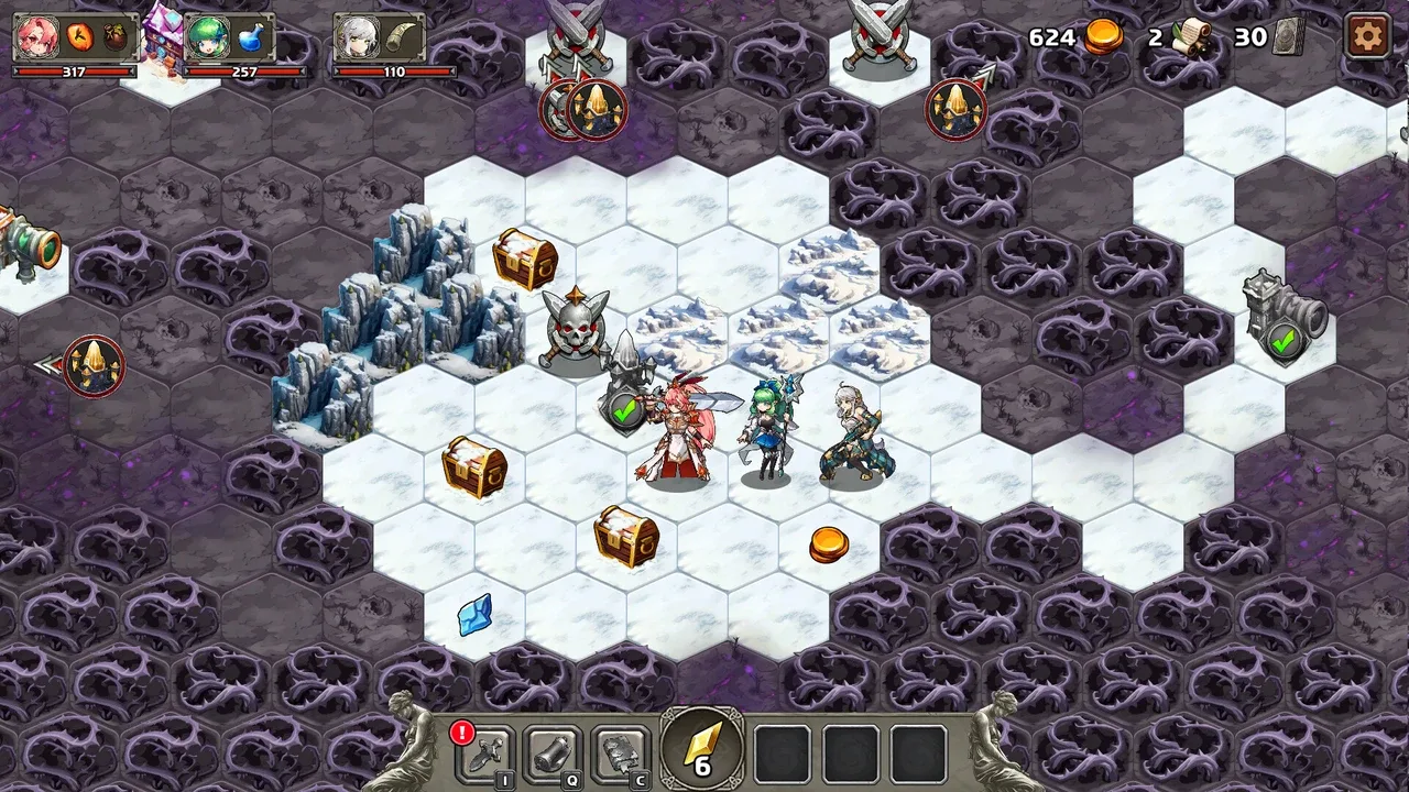 ¡Batalla por turnos en cuadrícula de 3x3 y el exquisito encuentro de la construcción de mazos rogue-lite! Coloca varios héroes en la cuadrícula de 3x3 para derrotar estratégicamente a tus enemigos. Personaliza y haz crecer a tus héroes con varias combinaciones de engranajes, cartas y reliquias. ¡Derrota a los demonios para recuperar el terreno perdido!