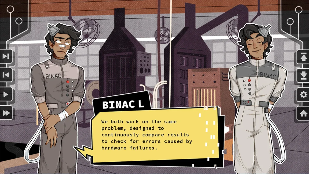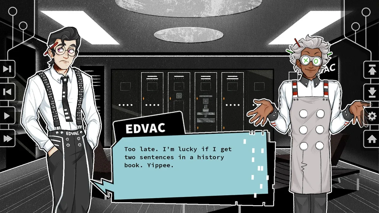 Aprende sobre los antepasados del mismo ordenador con el que estás viendo esto ahora en esta novela visual interactiva. ENIAC, UNIVAC... Espera, ¿estas máquinas te están hablando?